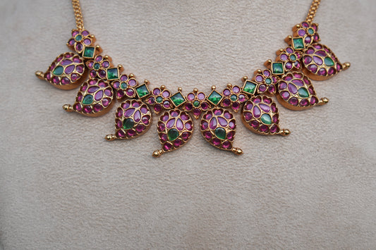 Kundan Coral Mango Necklace (4-9022)(K) (ALREADY DISCOUNTED)
