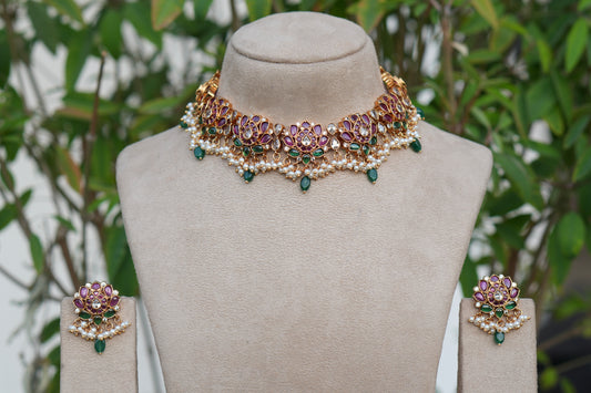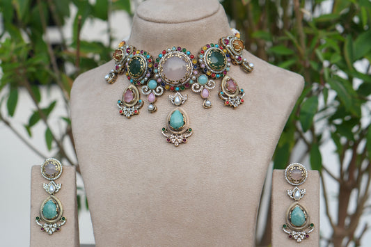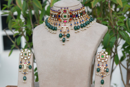 Multi Stone Polki Choker Set (4-9086)(B)