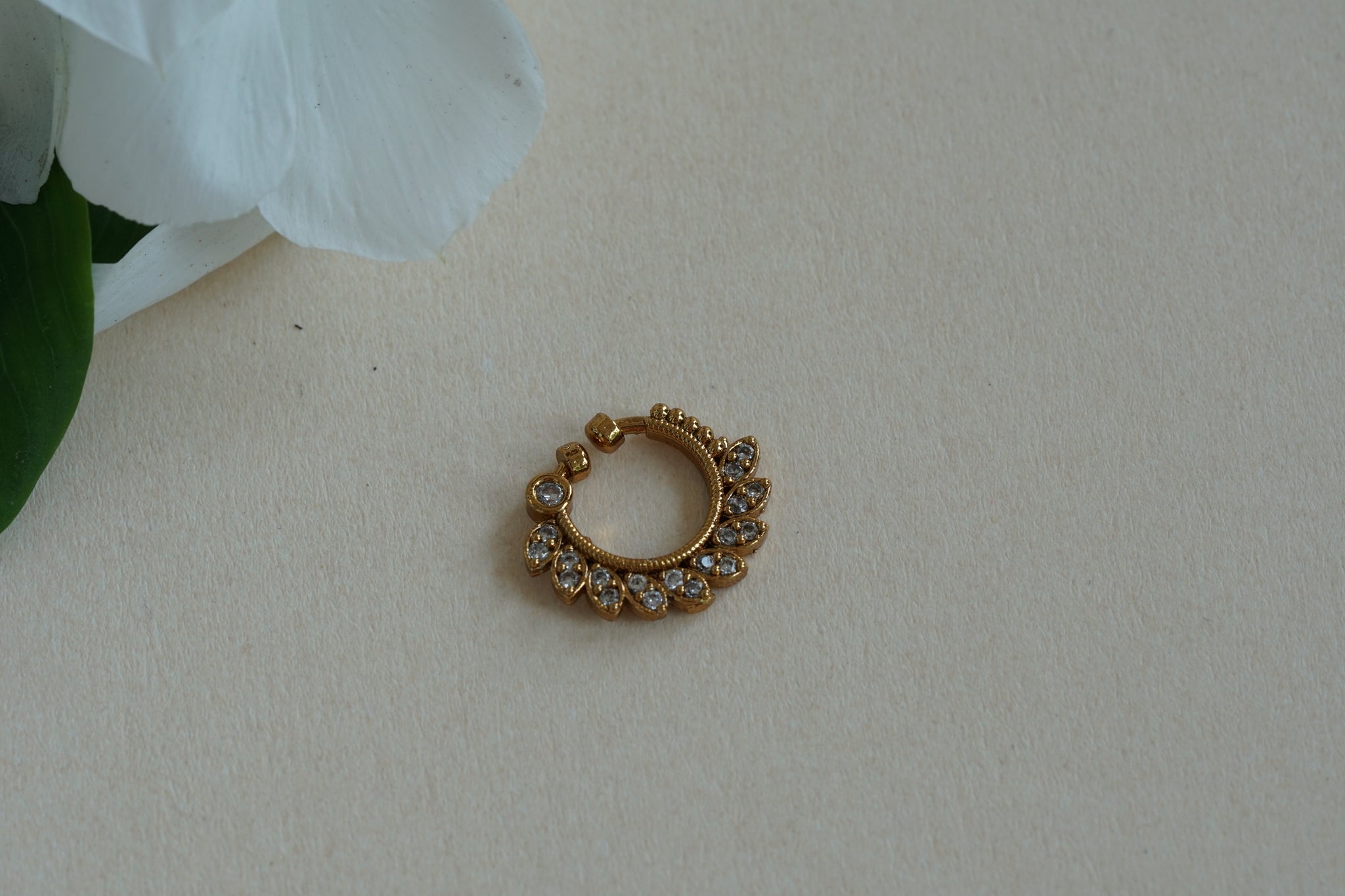 SKU : 2-192Featuring gold Polished studded antique Nath in silver mixed with brass metal.