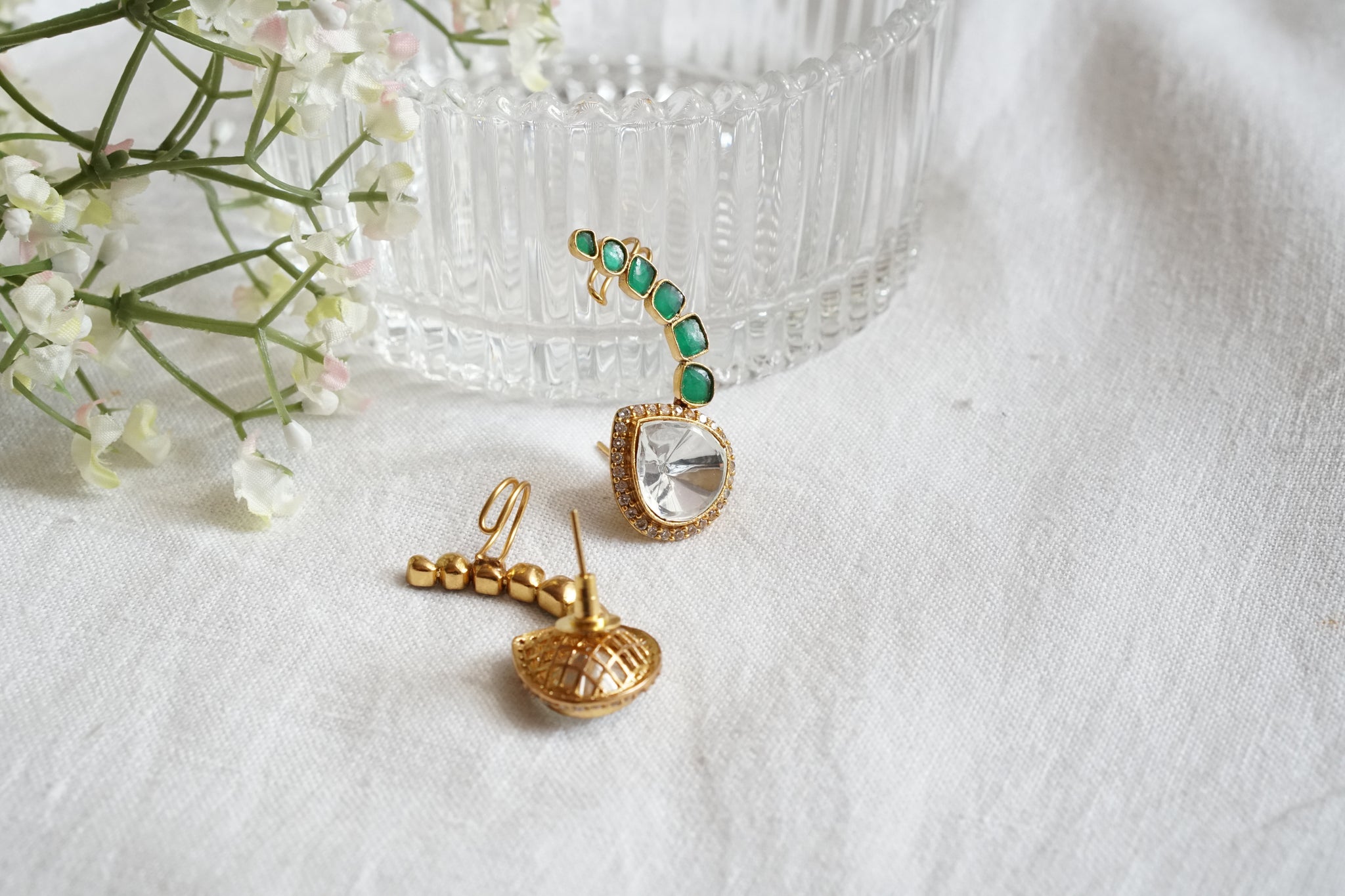 The Green stone Polki earcuff (1-4657)(B) is evocative, to say the least, but that's why you're drawn to it in the first place.