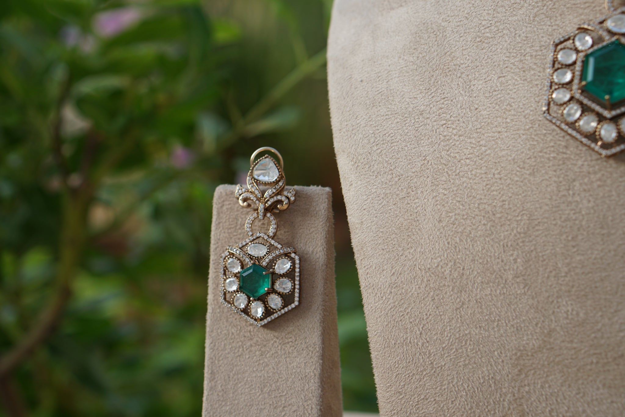 SKU : 4-8564Featuring gold polished polki Necklace Set in silver mised with brass metal.