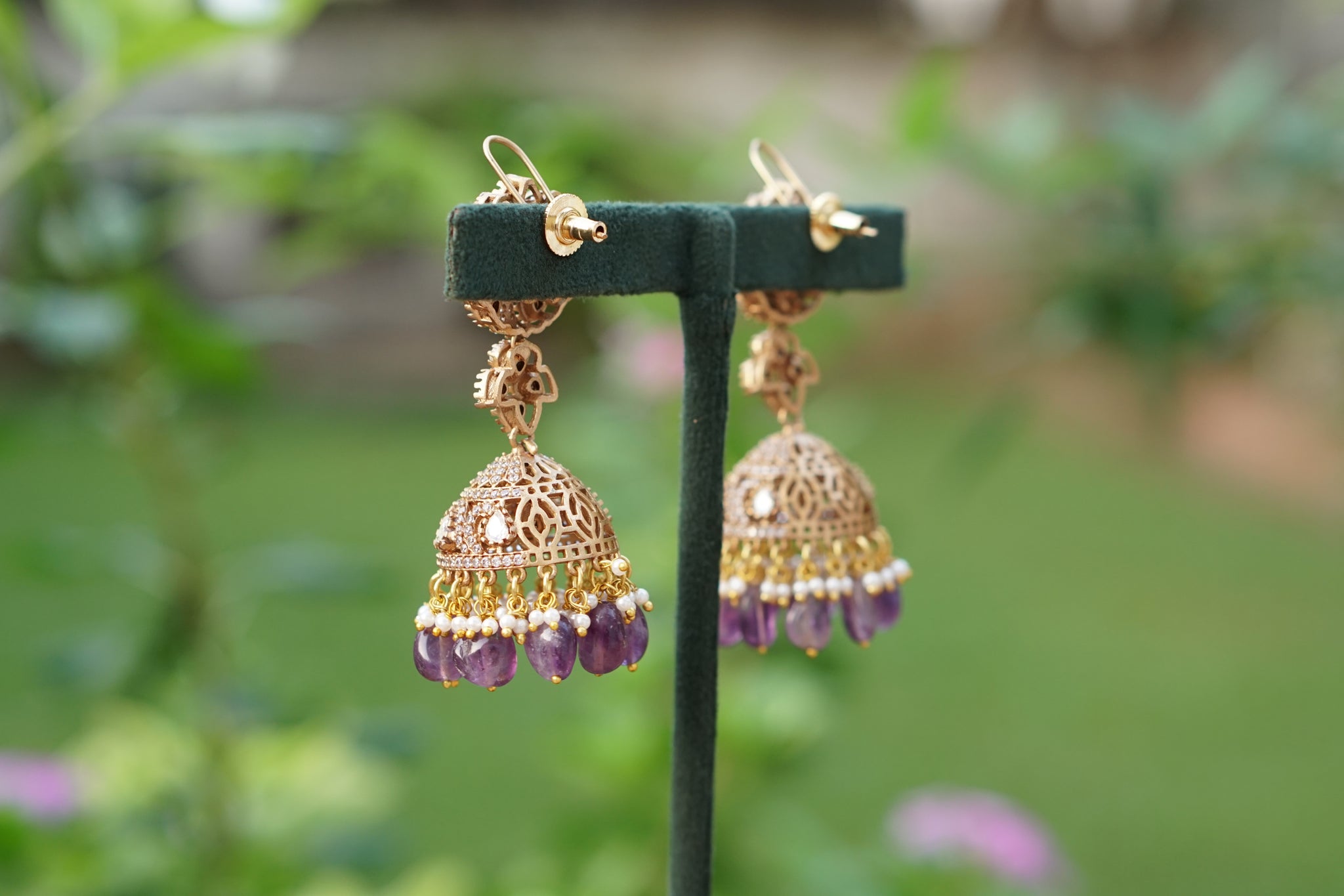 The Purple Polki Jhumki (1-4648)(B) is far and away, one of our most popular items. People can't seem to get enough of it.