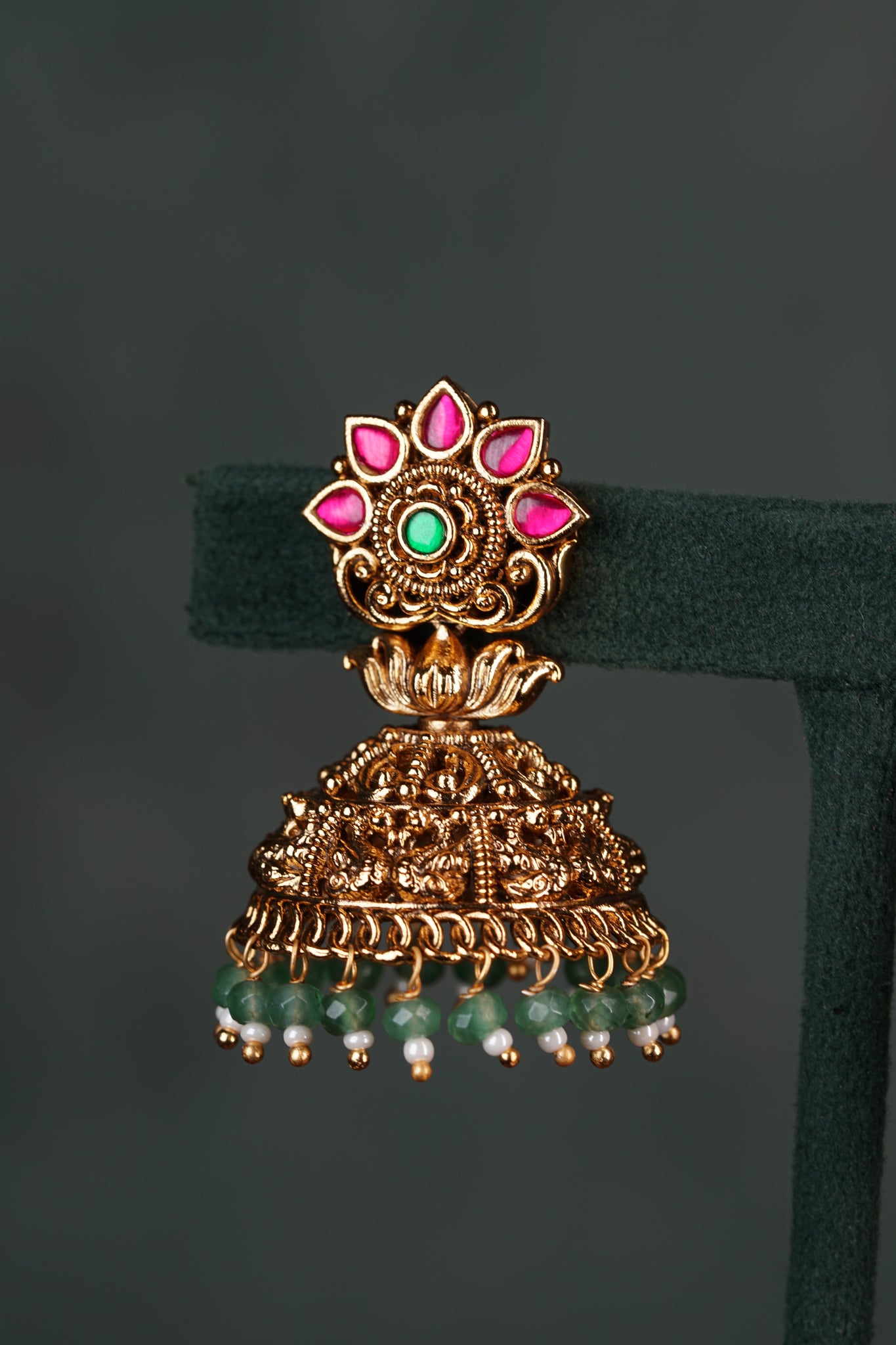 The Antique Kundan Jhumki (1-4568))(EX) is far and away, one of our most popular items. People can't seem to get enough of it.