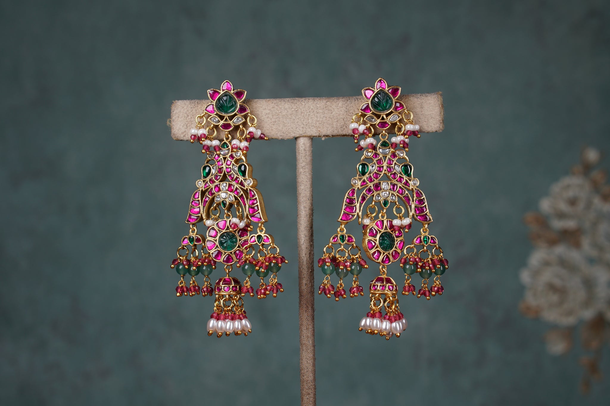 Imagine if you could be satisfied and content with your purchase. That can very much be your reality with the Green & Pink Kundan Earrings (1-4685)(K).