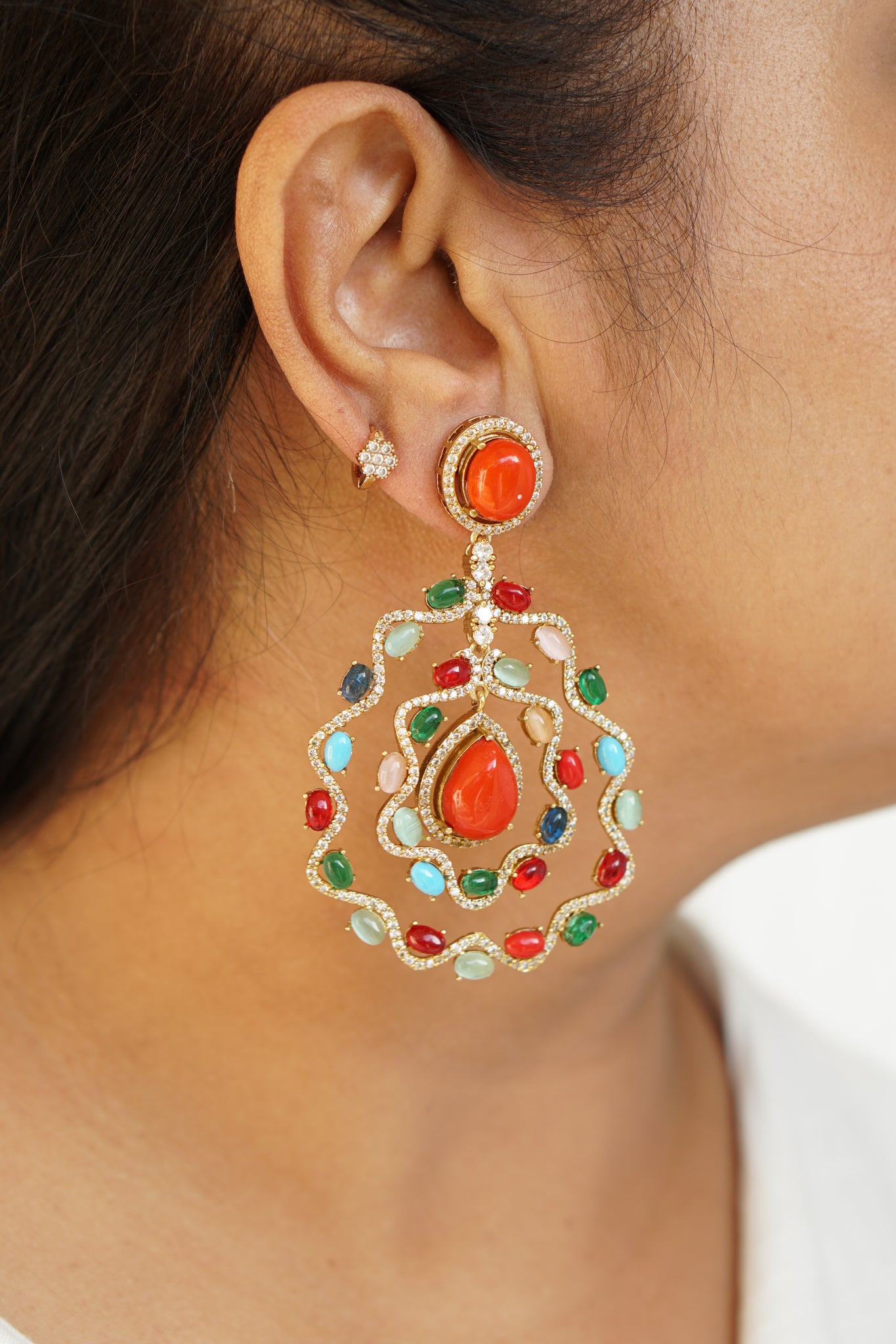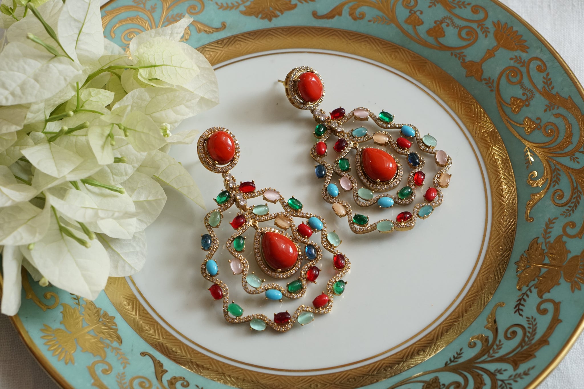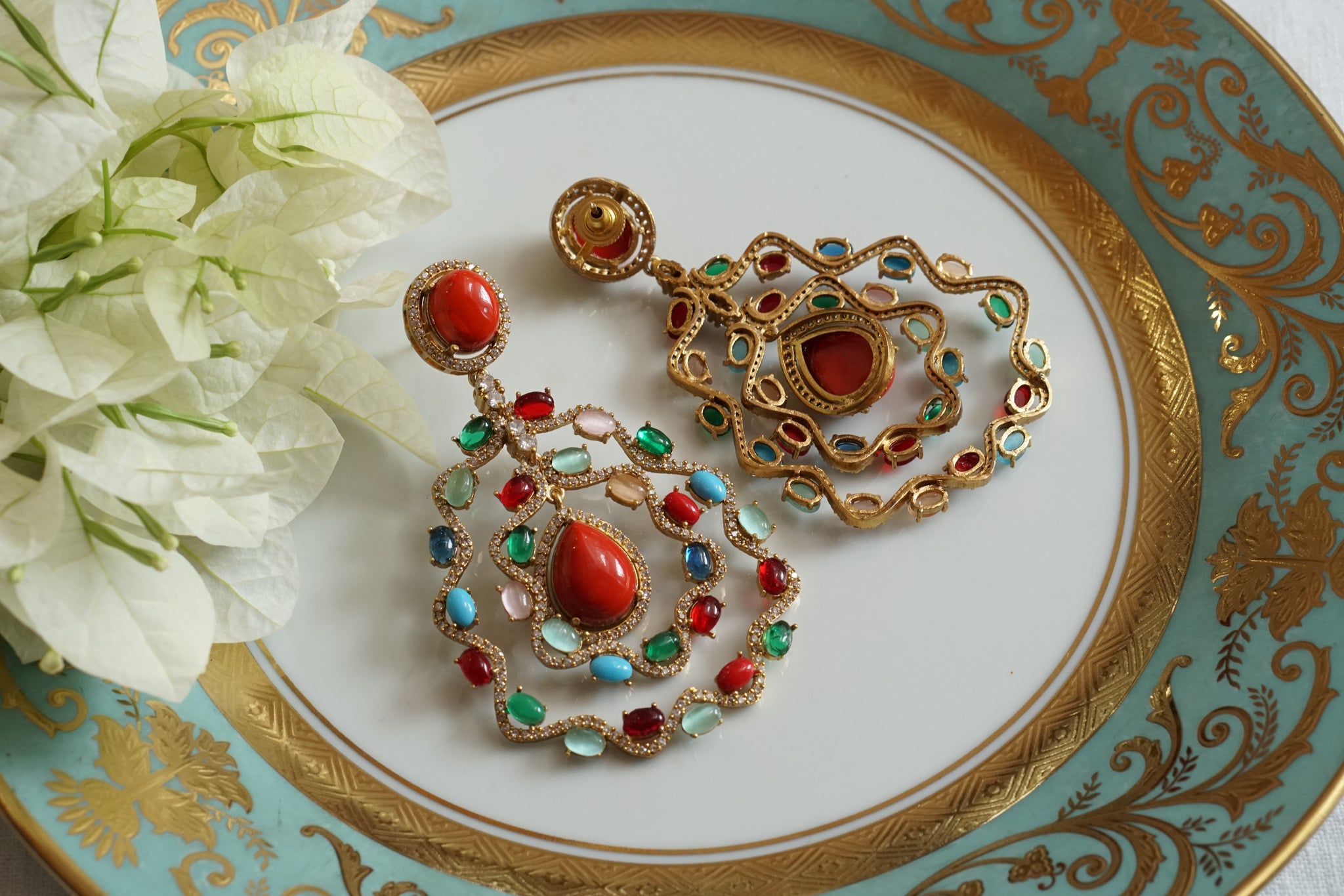 SKU : 1-4745Featuring gold polished real Multi stone Earring made in silver mixed with brass metal.