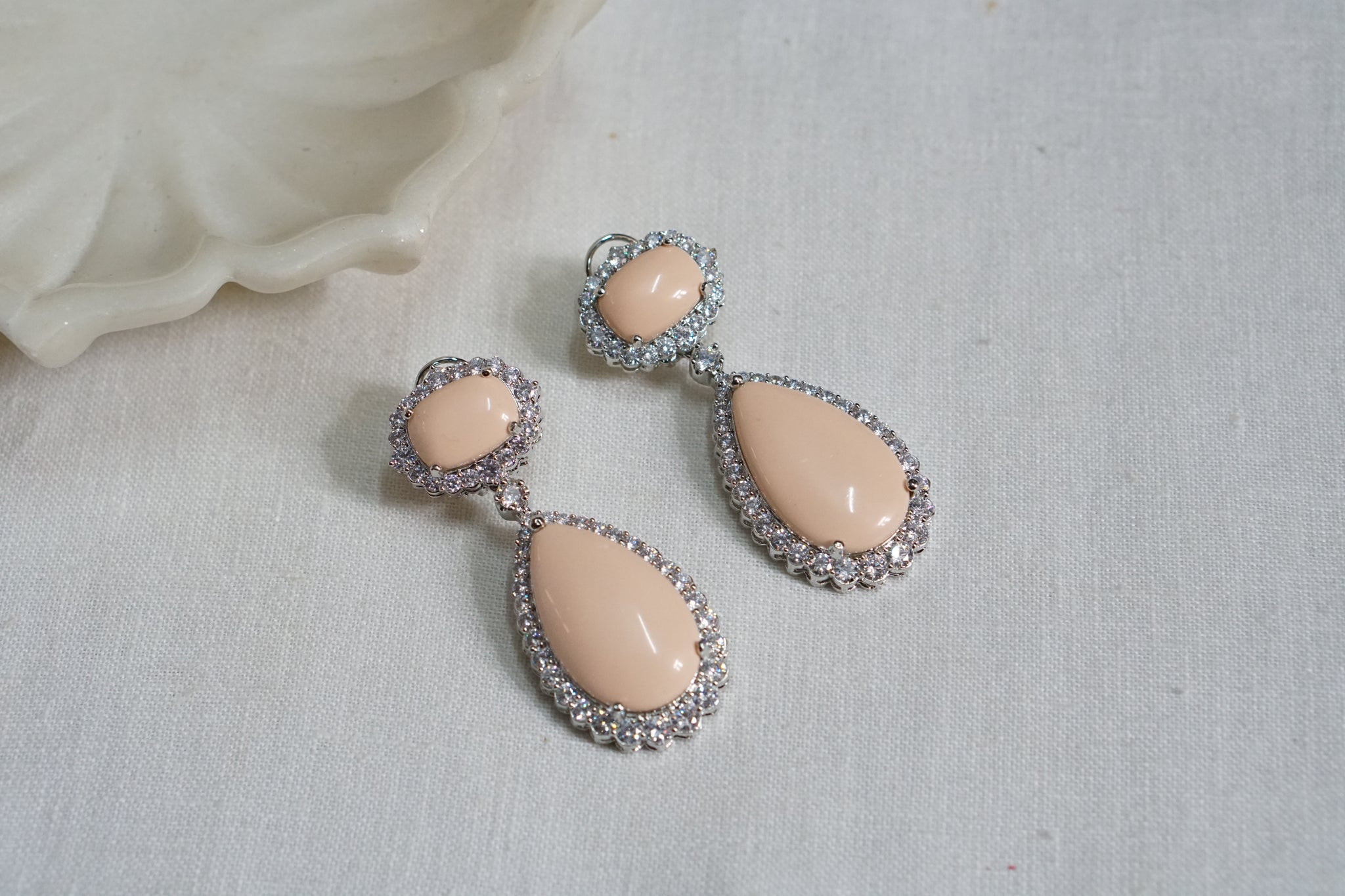 Imagine if you could be satisfied and content with your purchase. That can very much be your reality with the Peach stone AD earrings (1-4580)(EX).