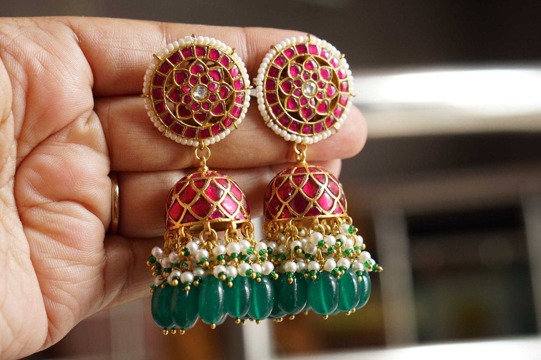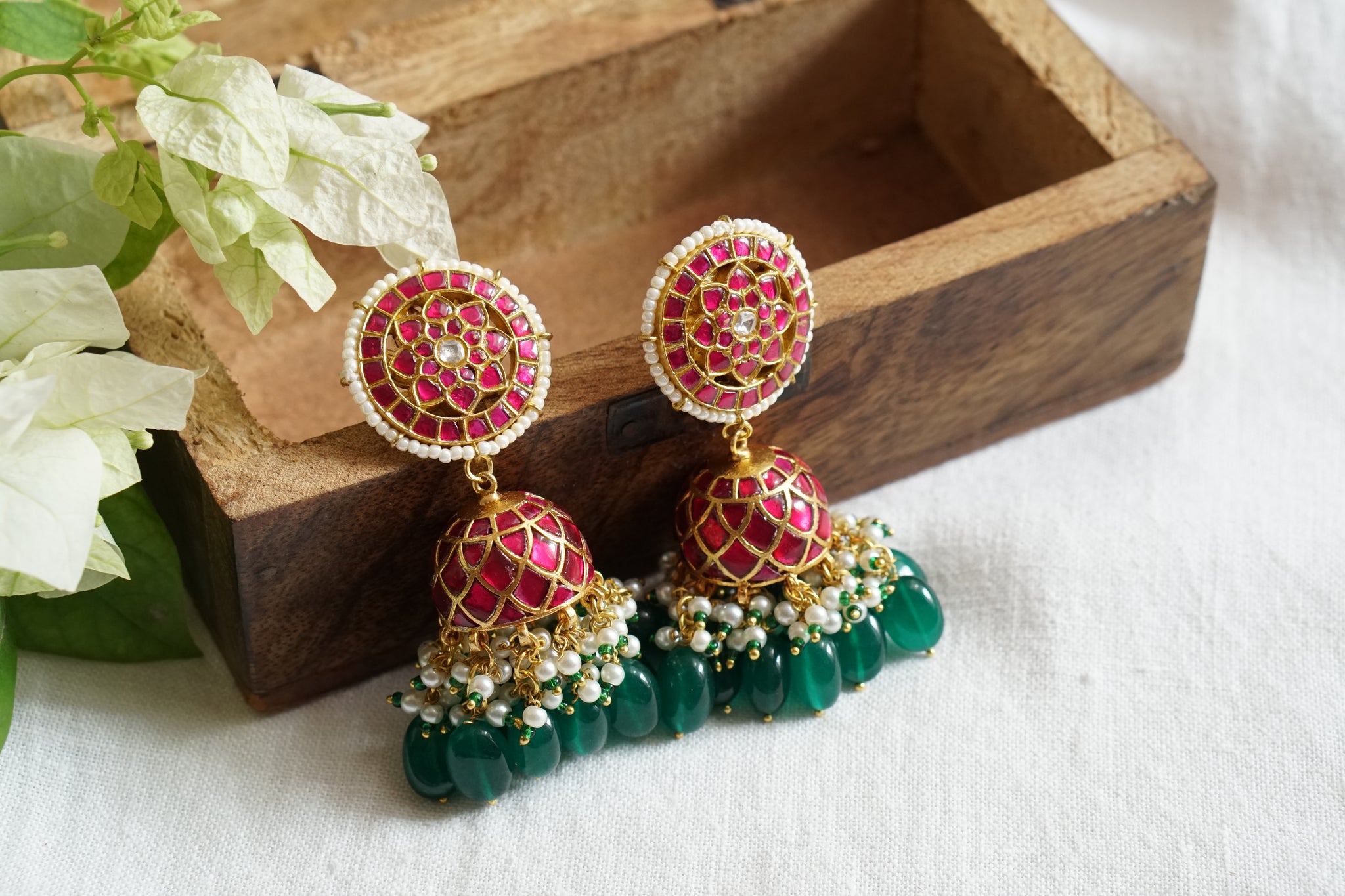 Imagine if you could be satisfied and content with your purchase. That can very much be your reality with the Pink Kundan Jhumki (1-4702)(R).