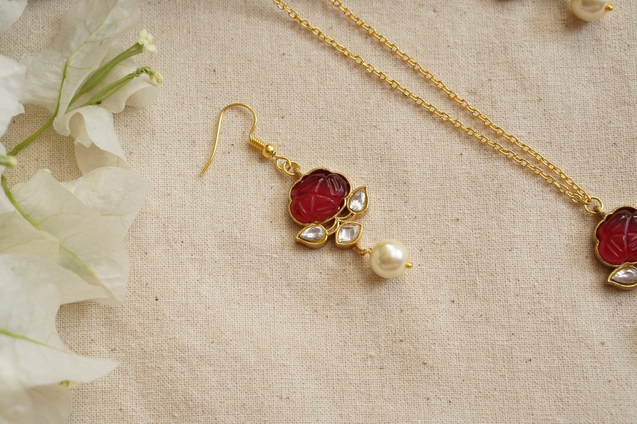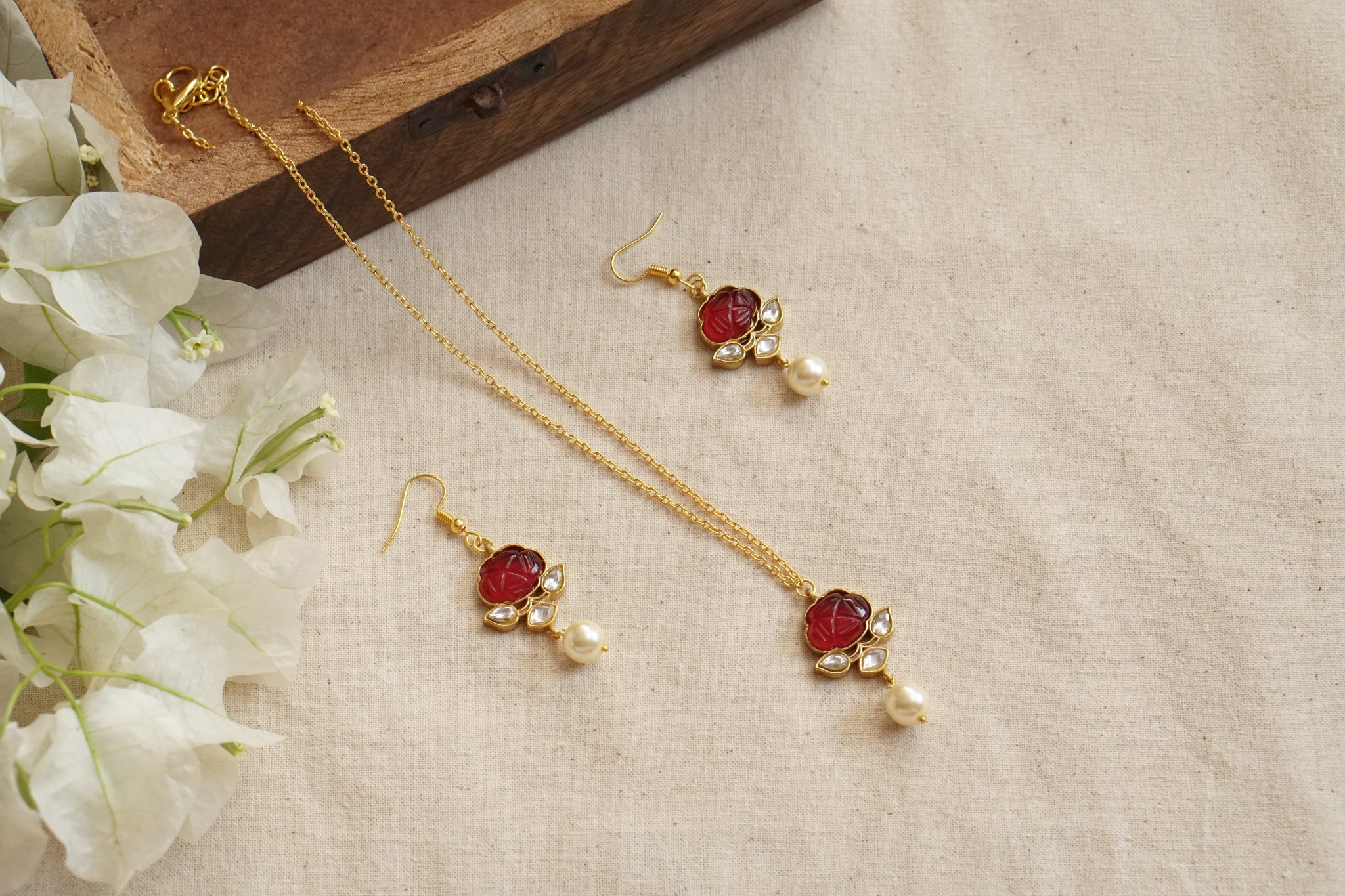 The Red stone pendant necklace with earrings (4-8591)(R) is a sensational customer favorite, and we hope you like it just as much.