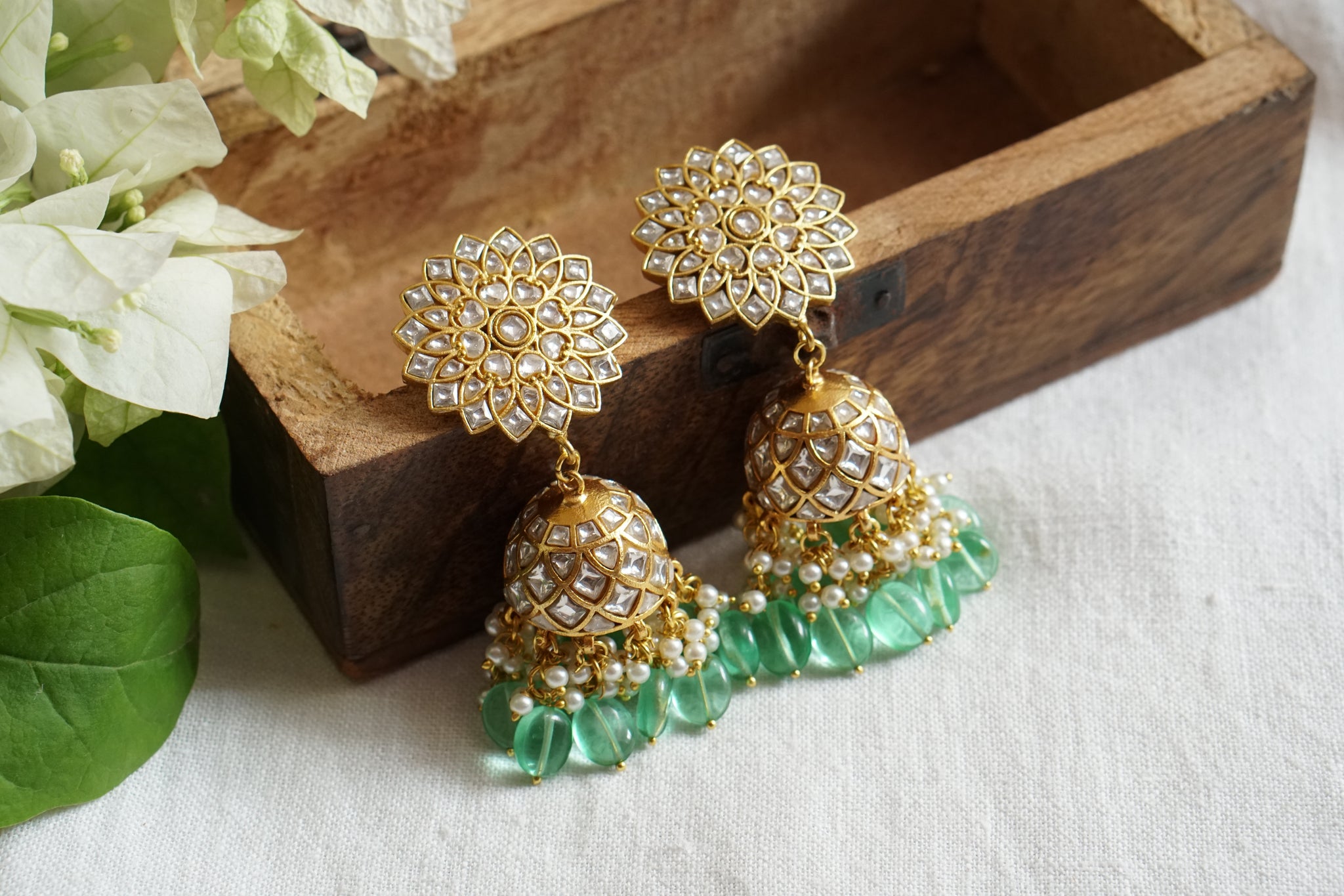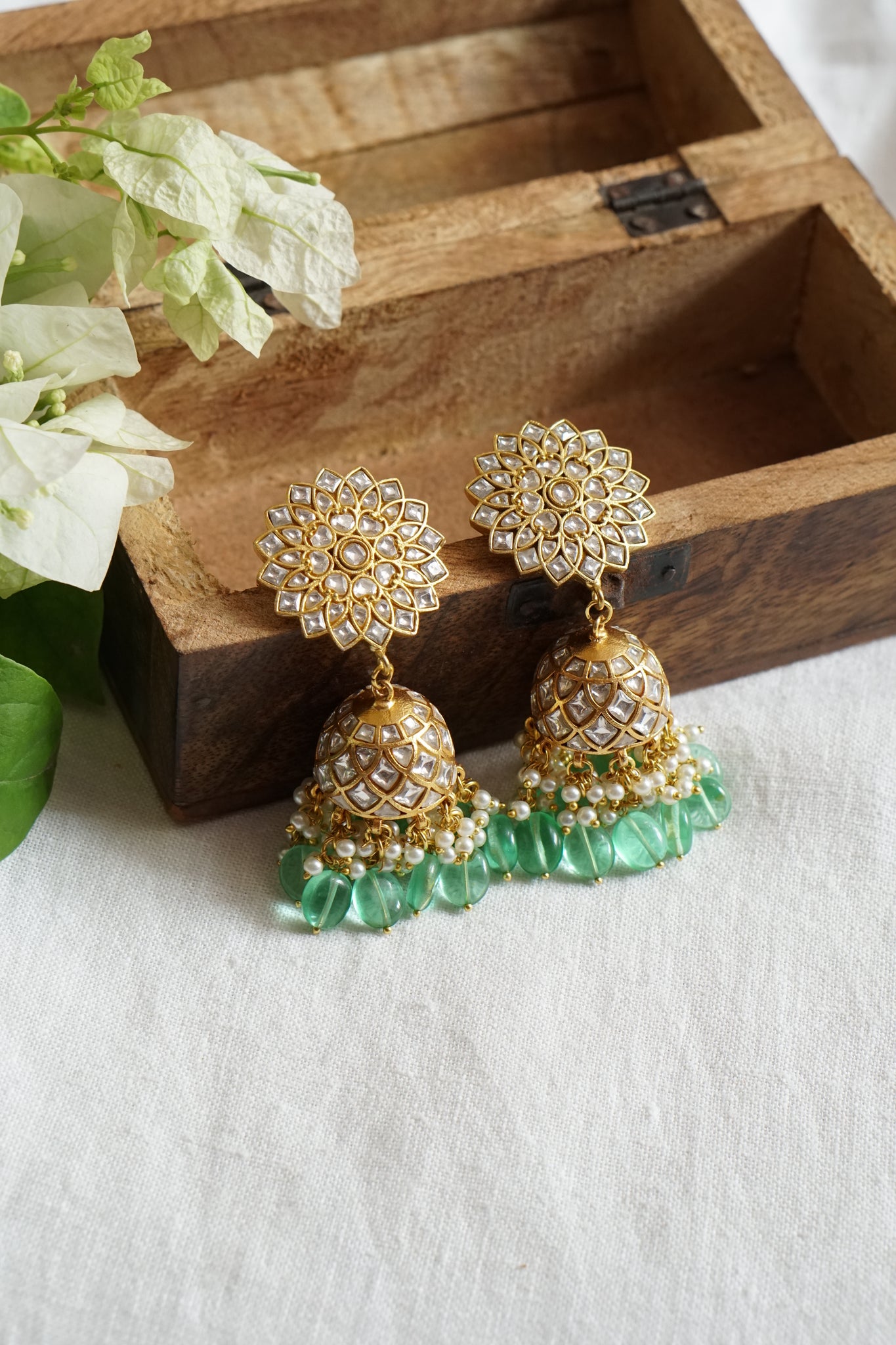 Life is too short to live without the White Kundan Jhumki (1-4701)(R). Be happy. Be Content. Be Satisfied.