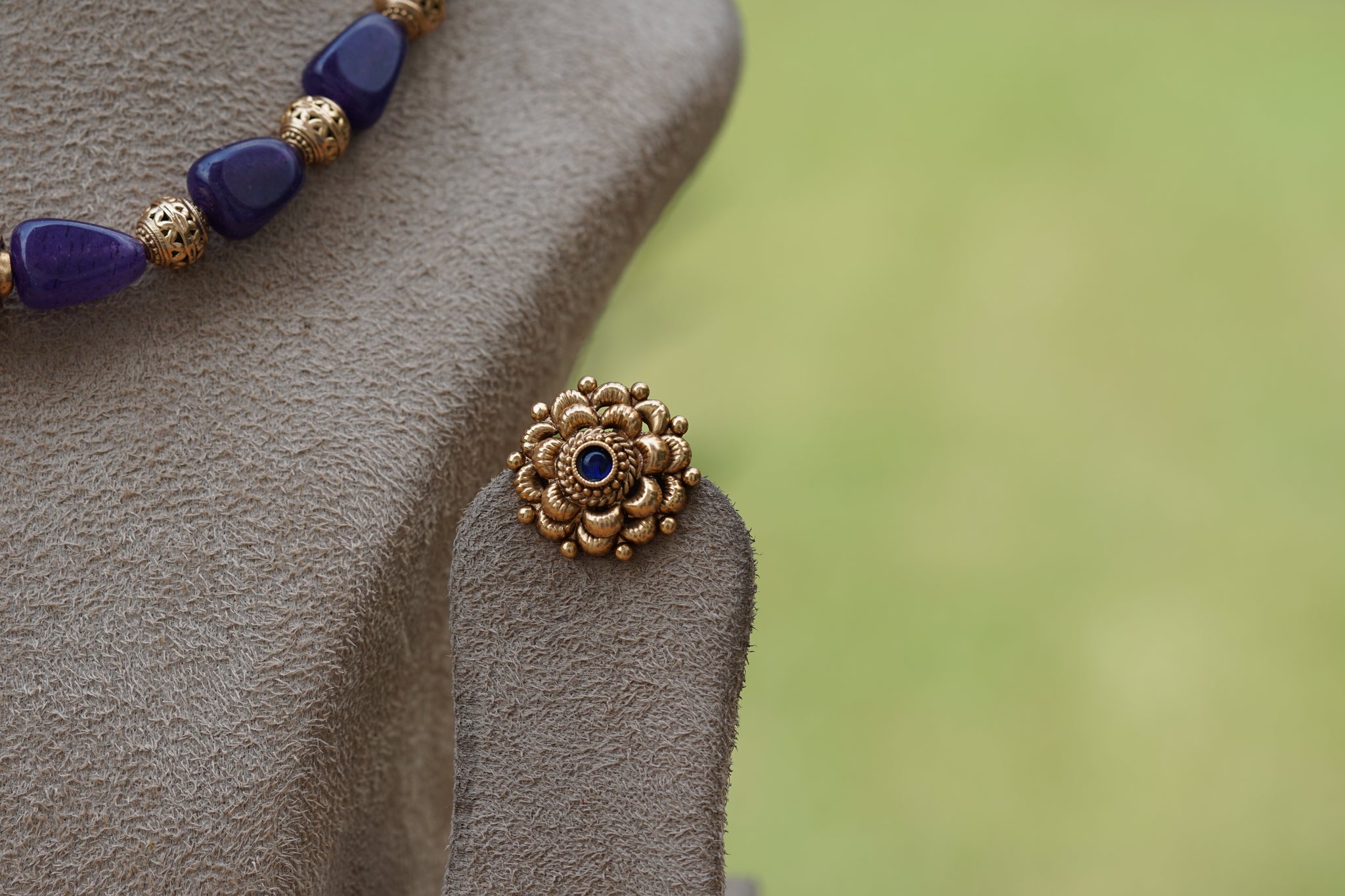 Featuring gold polished studded Antique Necklace Set  in sliver mixed with brass metal