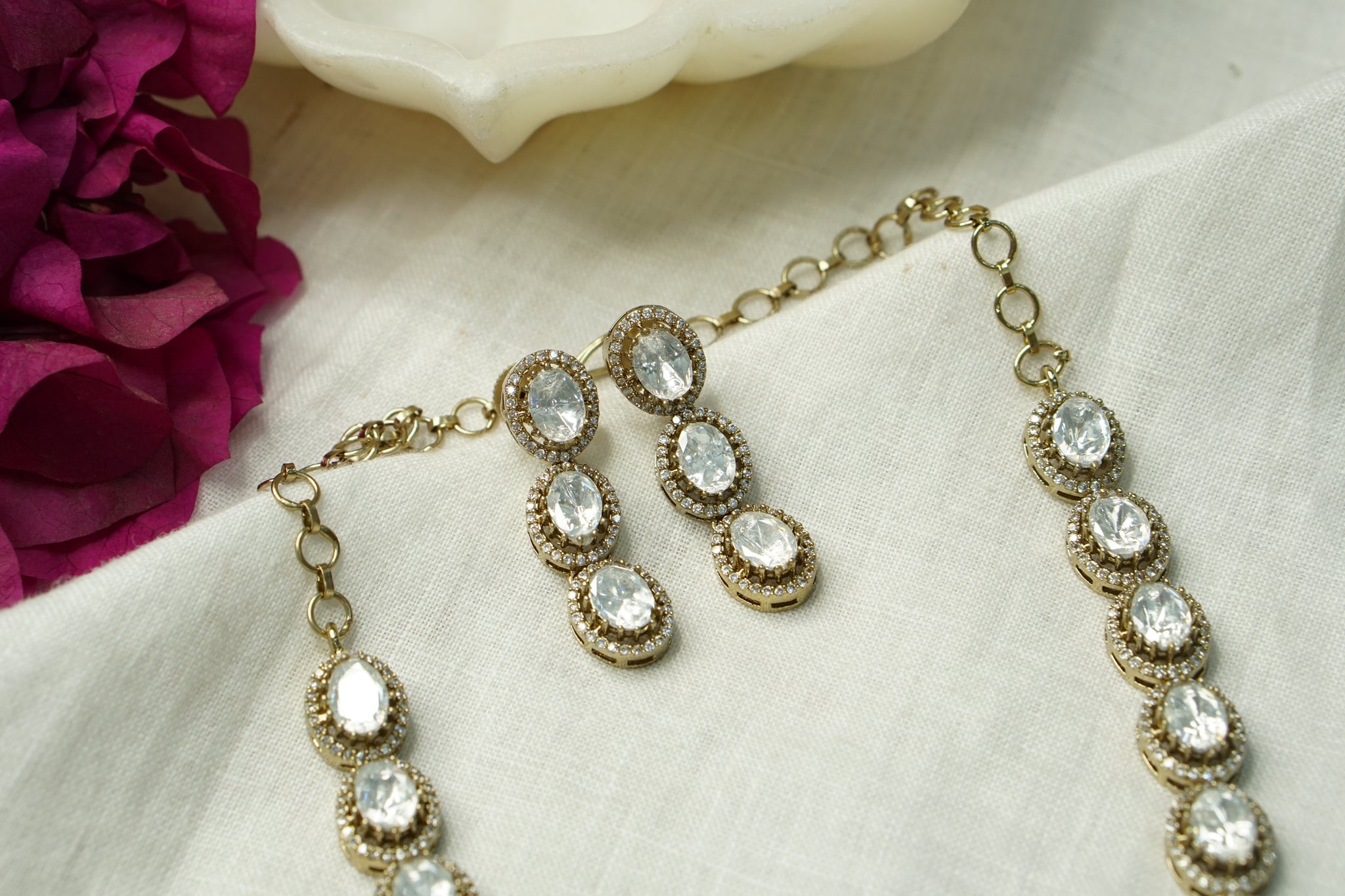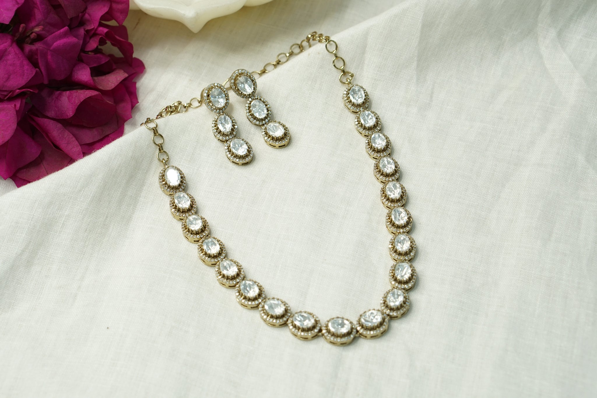SKU : 4-8834Featuring gold polished Polki Necklace Set in silver mixed with brass metal.