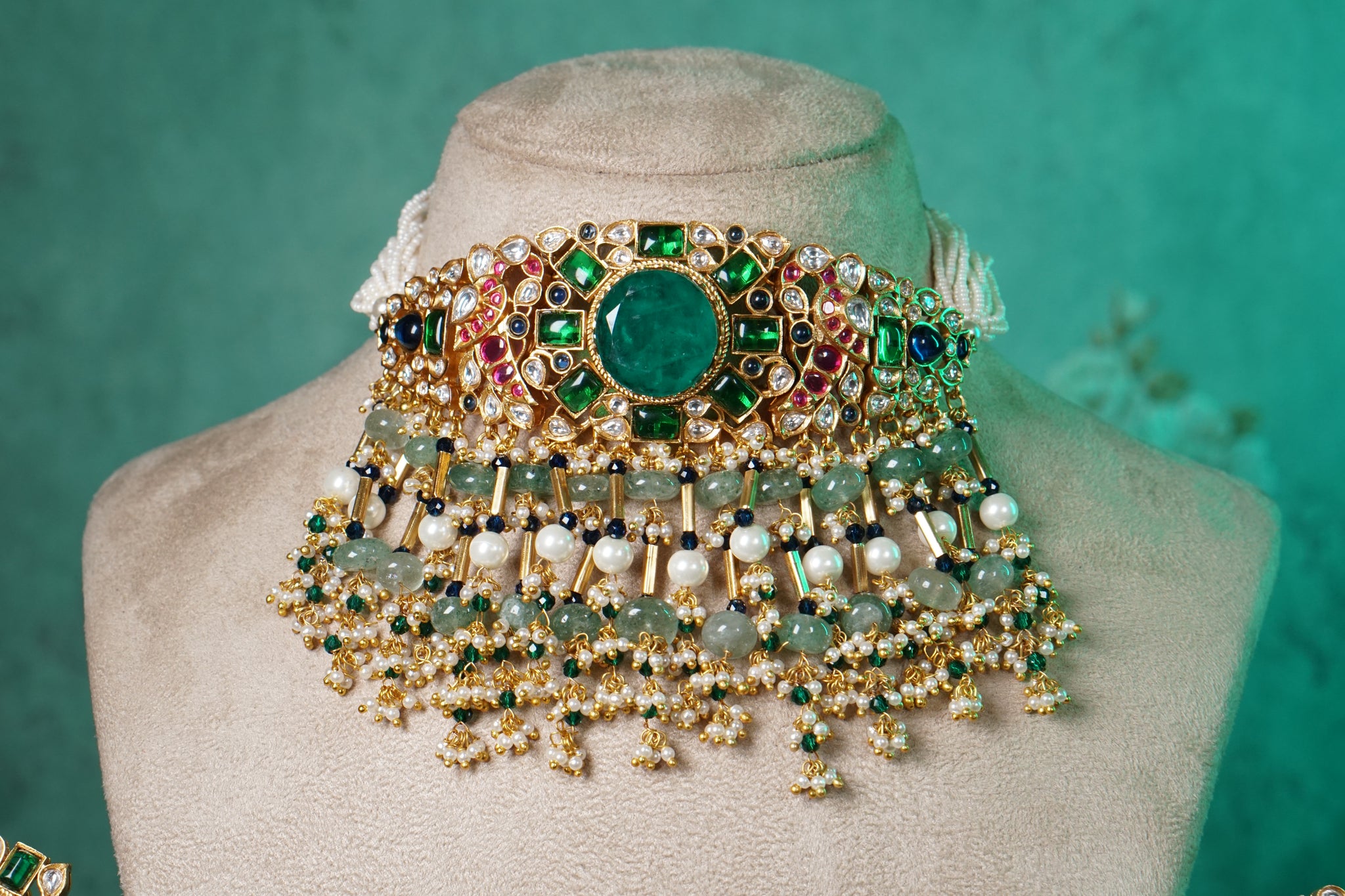 Imagine if you could be satisfied and content with your purchase. That can very much be your reality with the Green Polki Choker Set (4-8631(B).