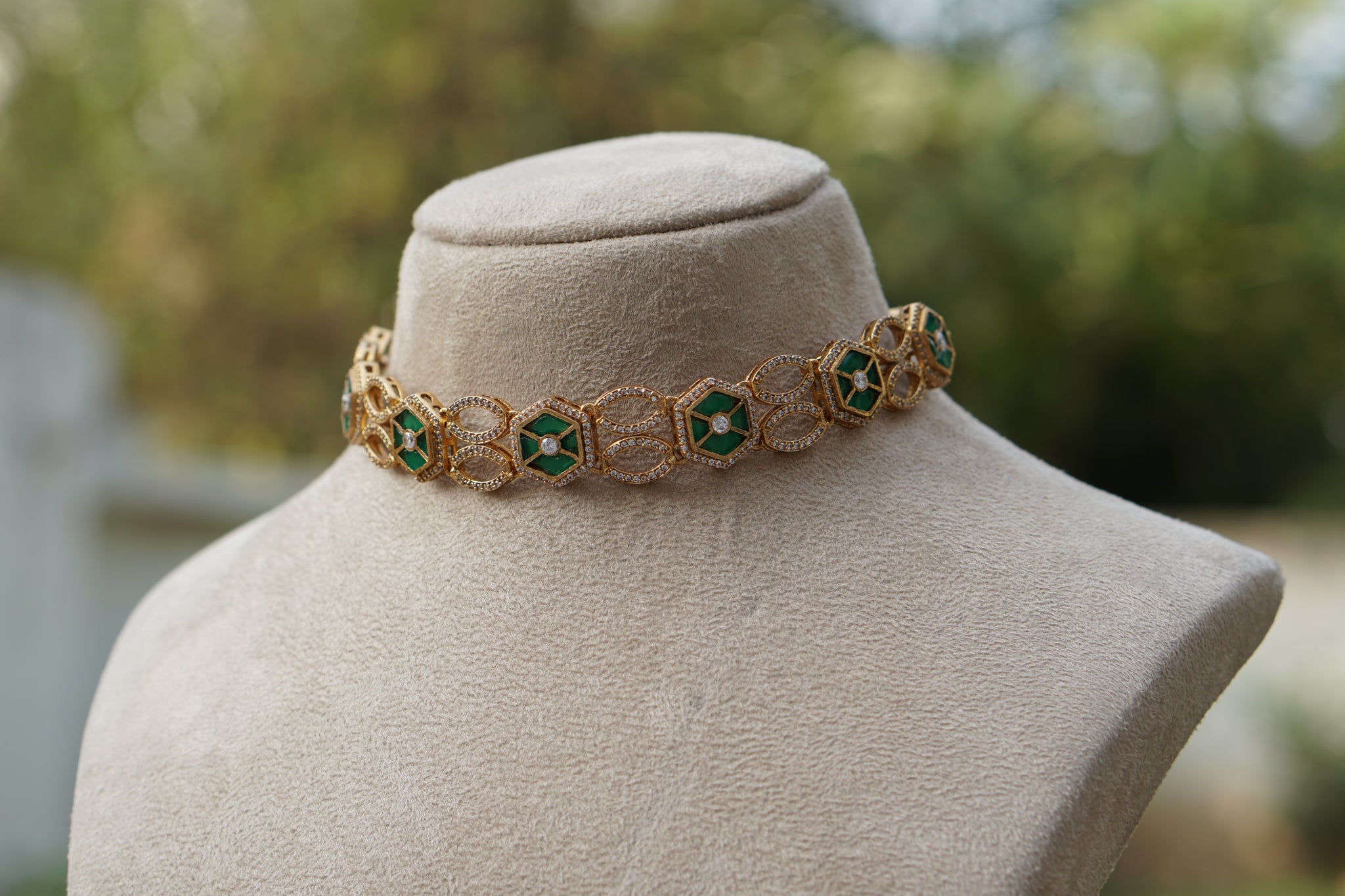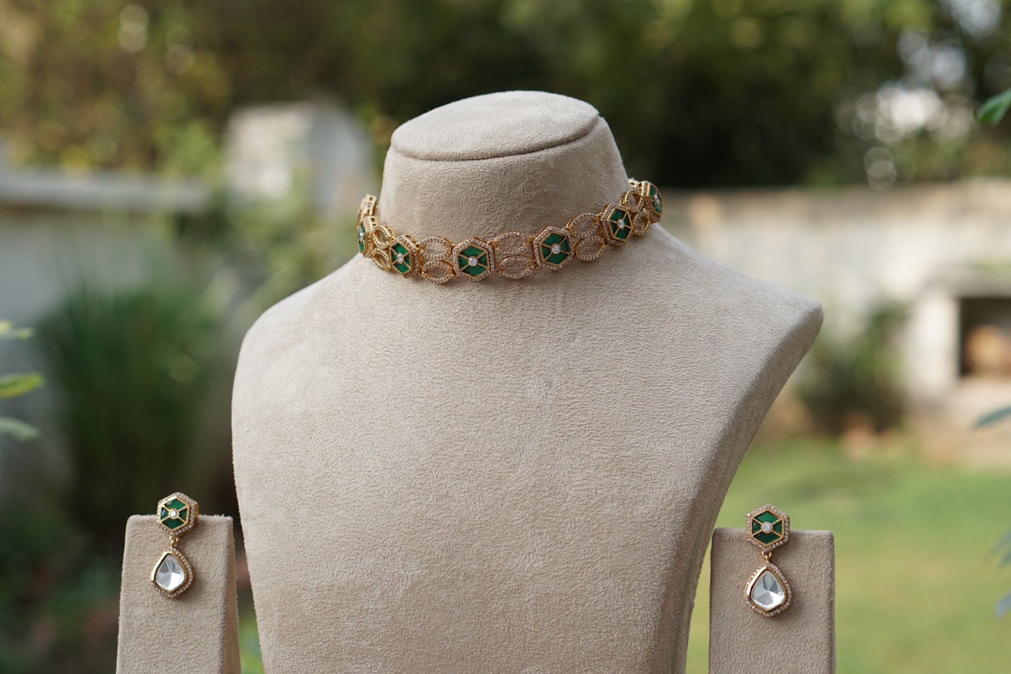 Green Stone Polki Choker Set (4-8641)(B)