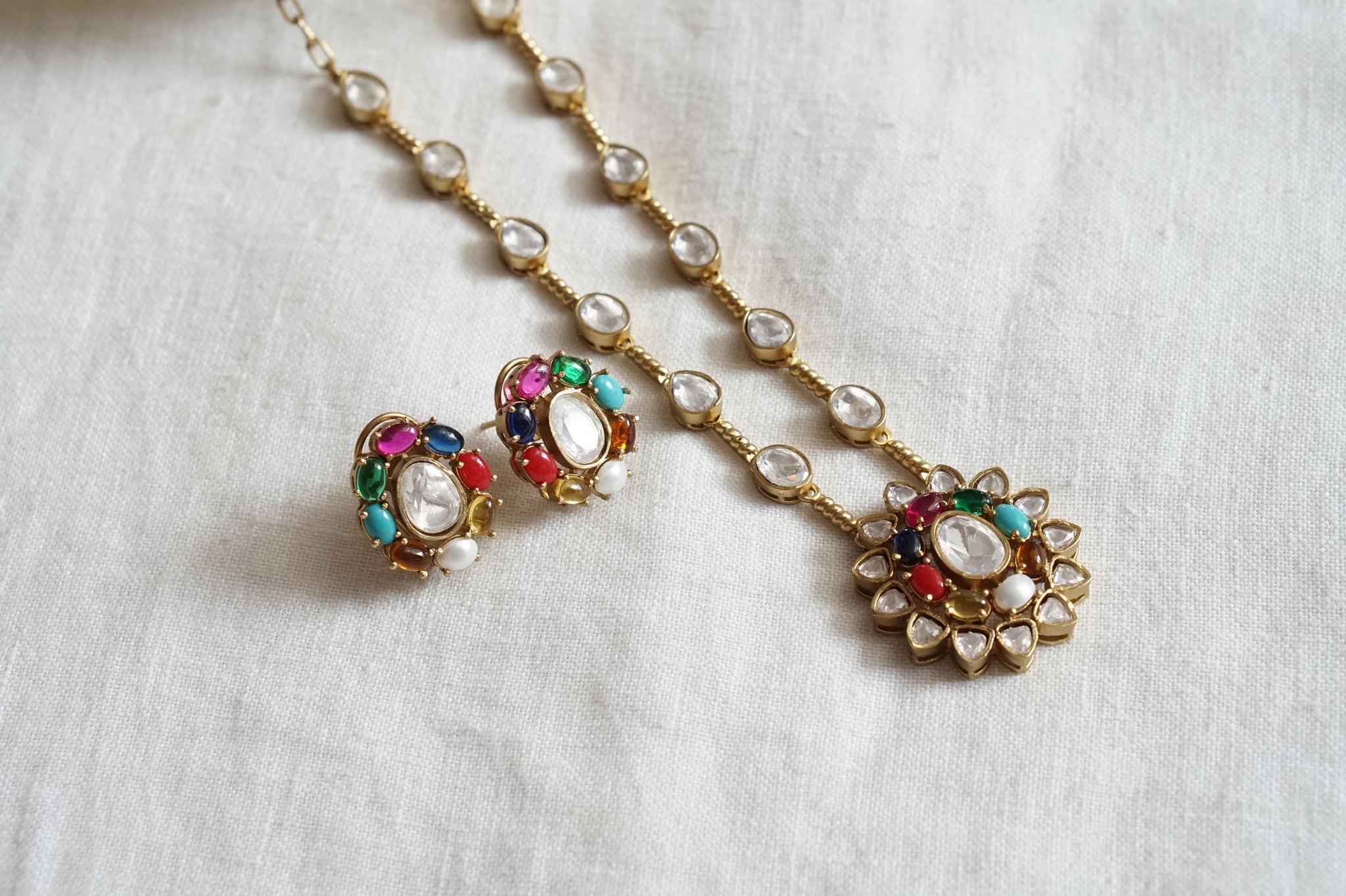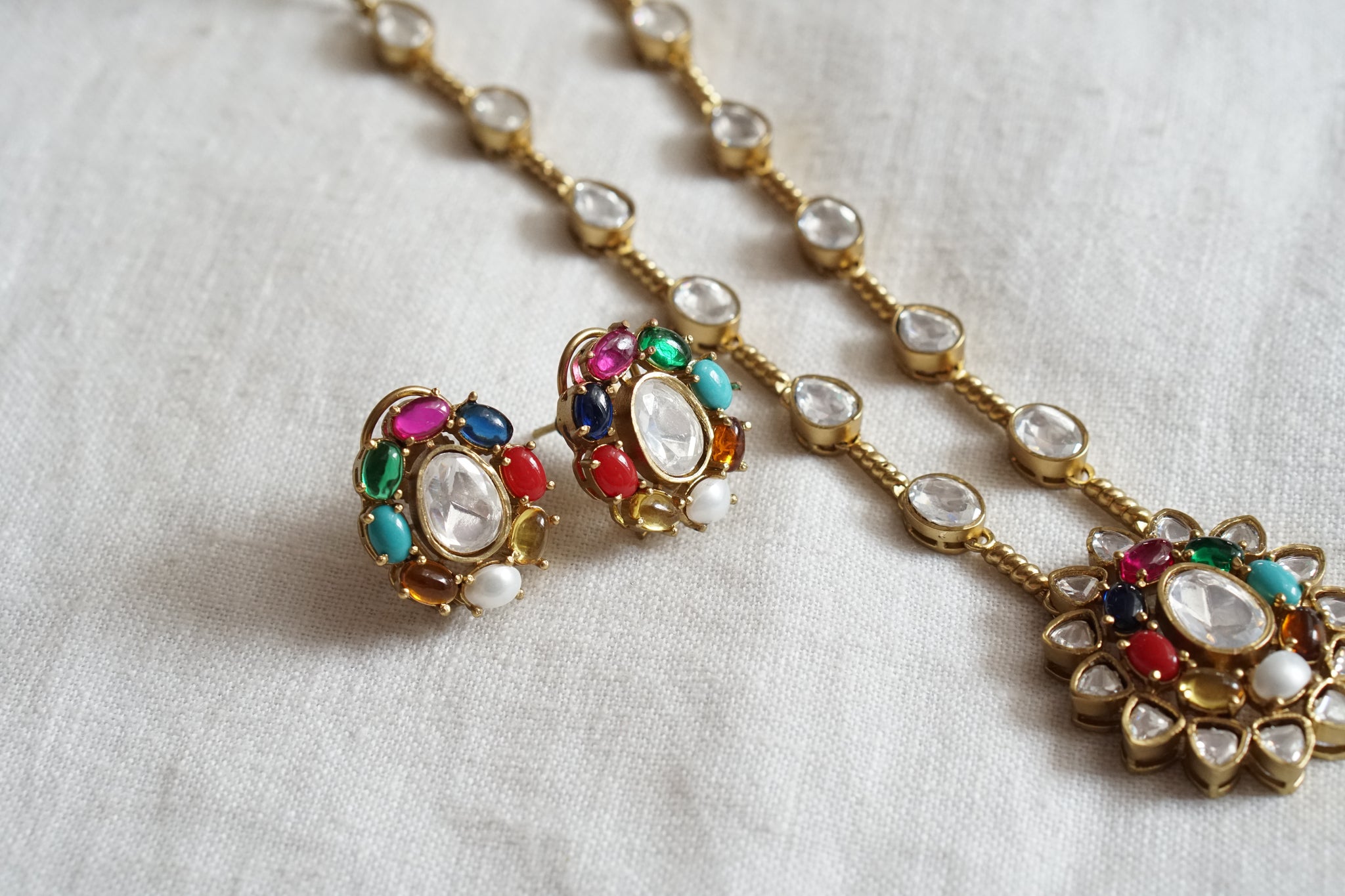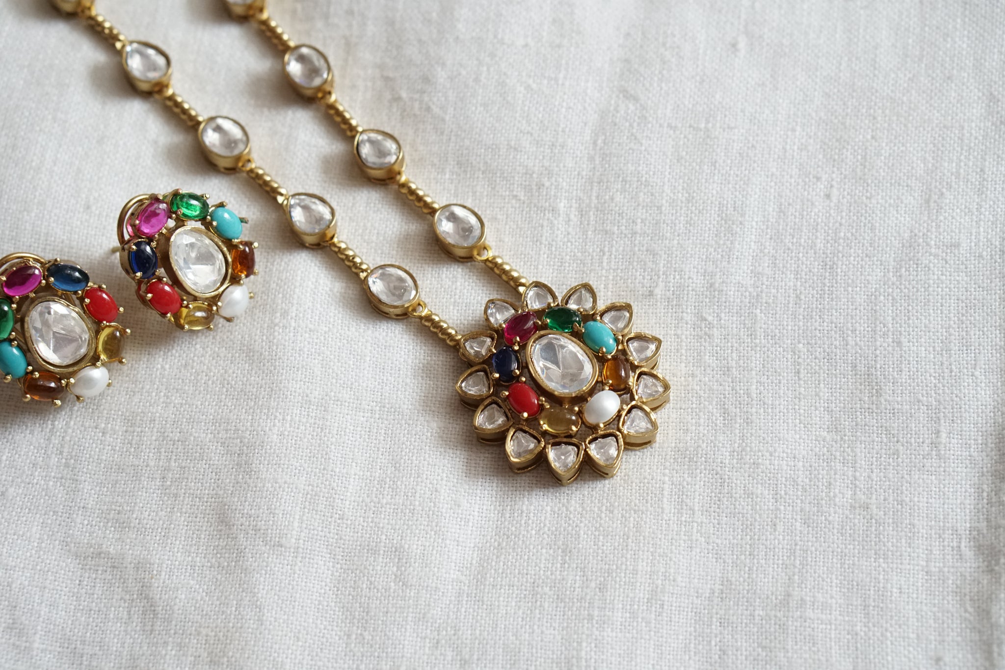 Life is too short to live without the Multi Stone Polki Pendant Set (4-8431)(B). Be happy. Be Content. Be Satisfied.