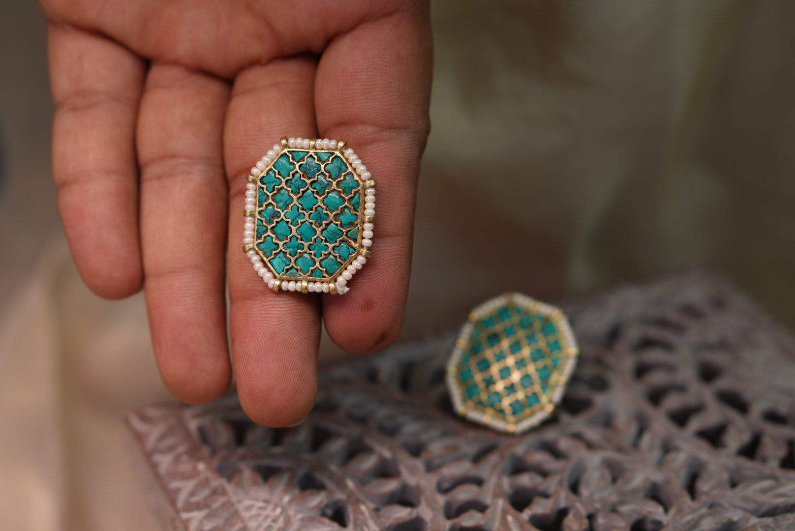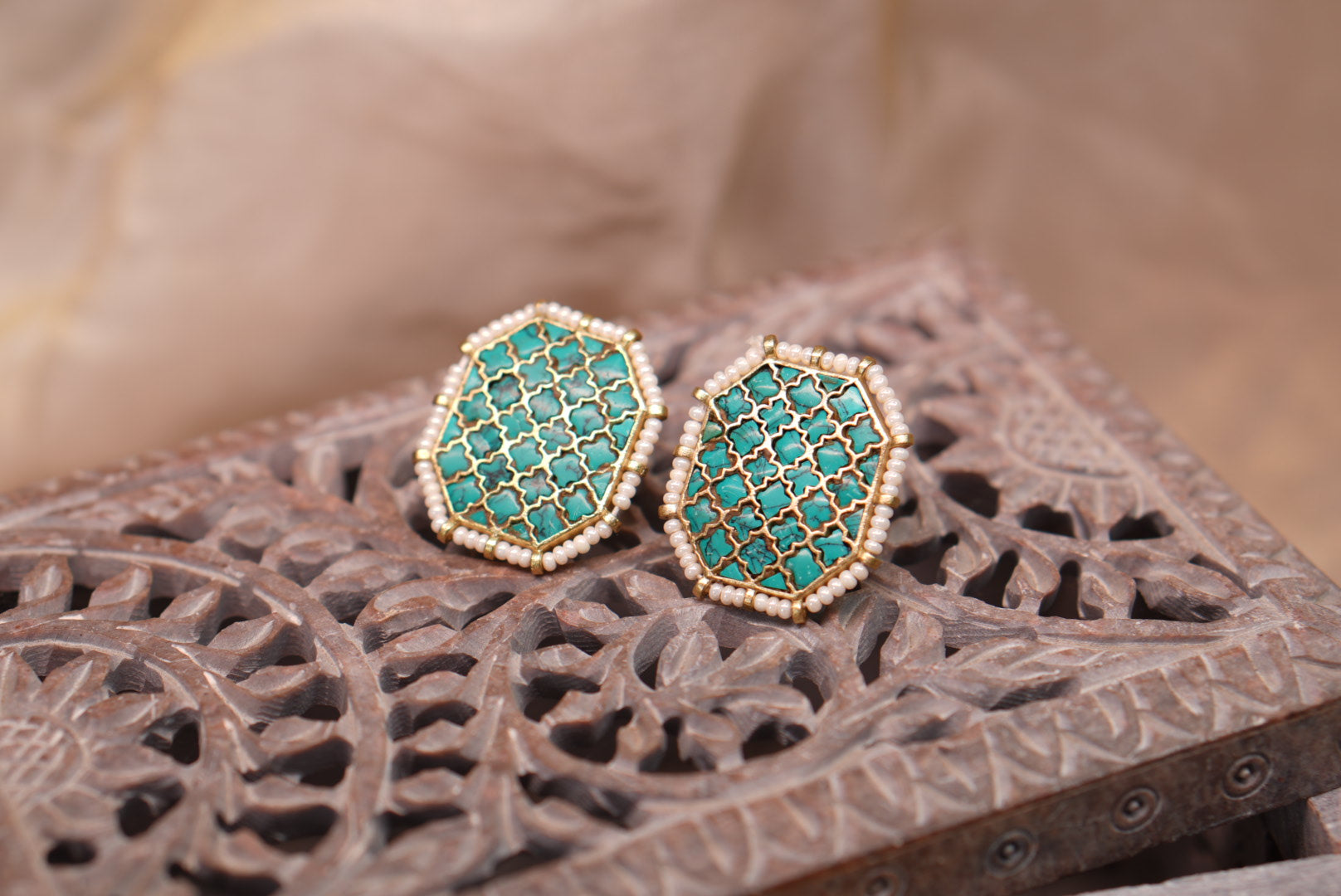 Featuring gold polished Kundan Studs made in silver mixed with brass metal.