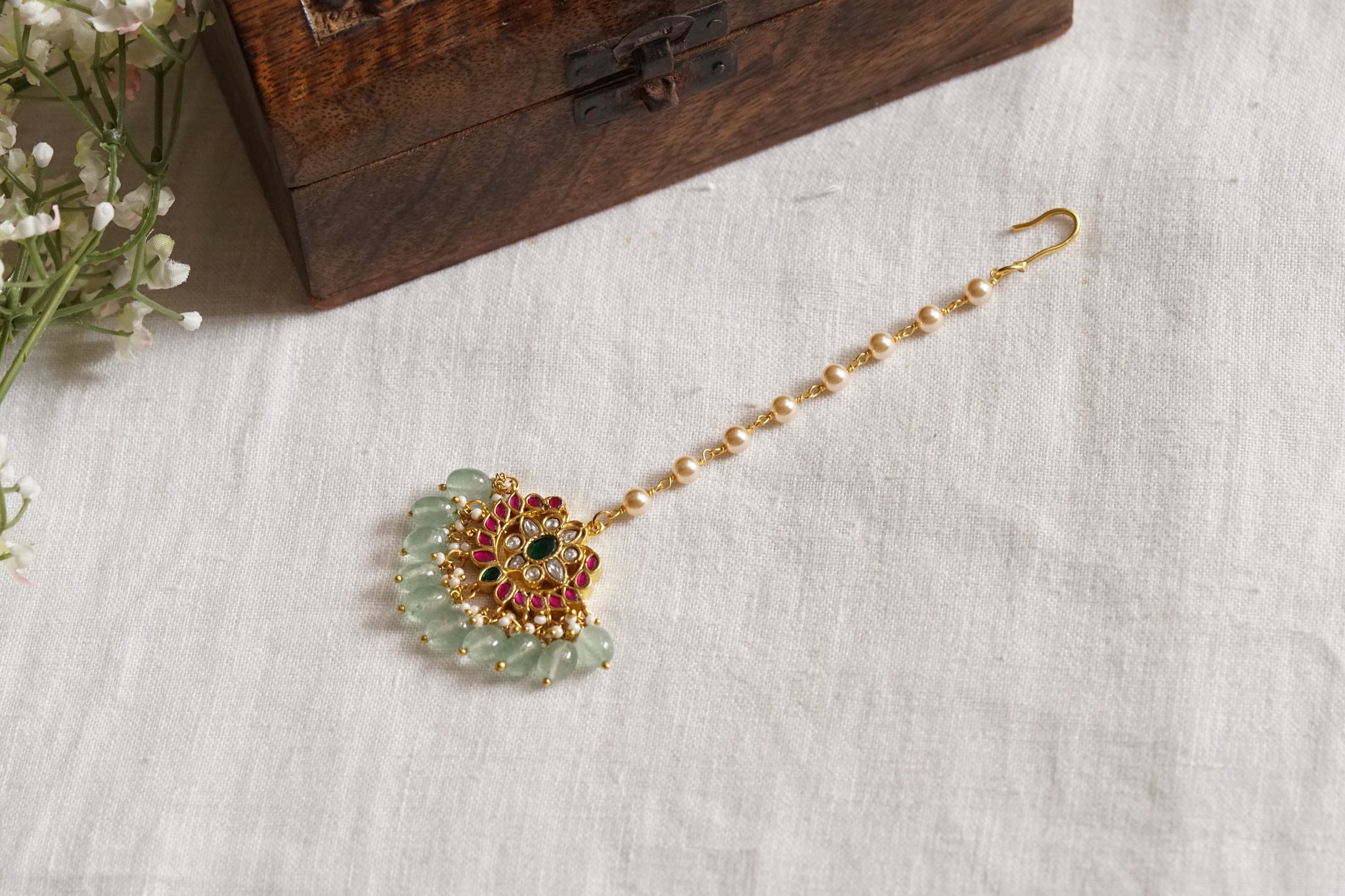 Every product is unique, just like you. If you're looking for a product that fits the mold of your life, the Kundan Maangtika (5-1517)(K) is for you.