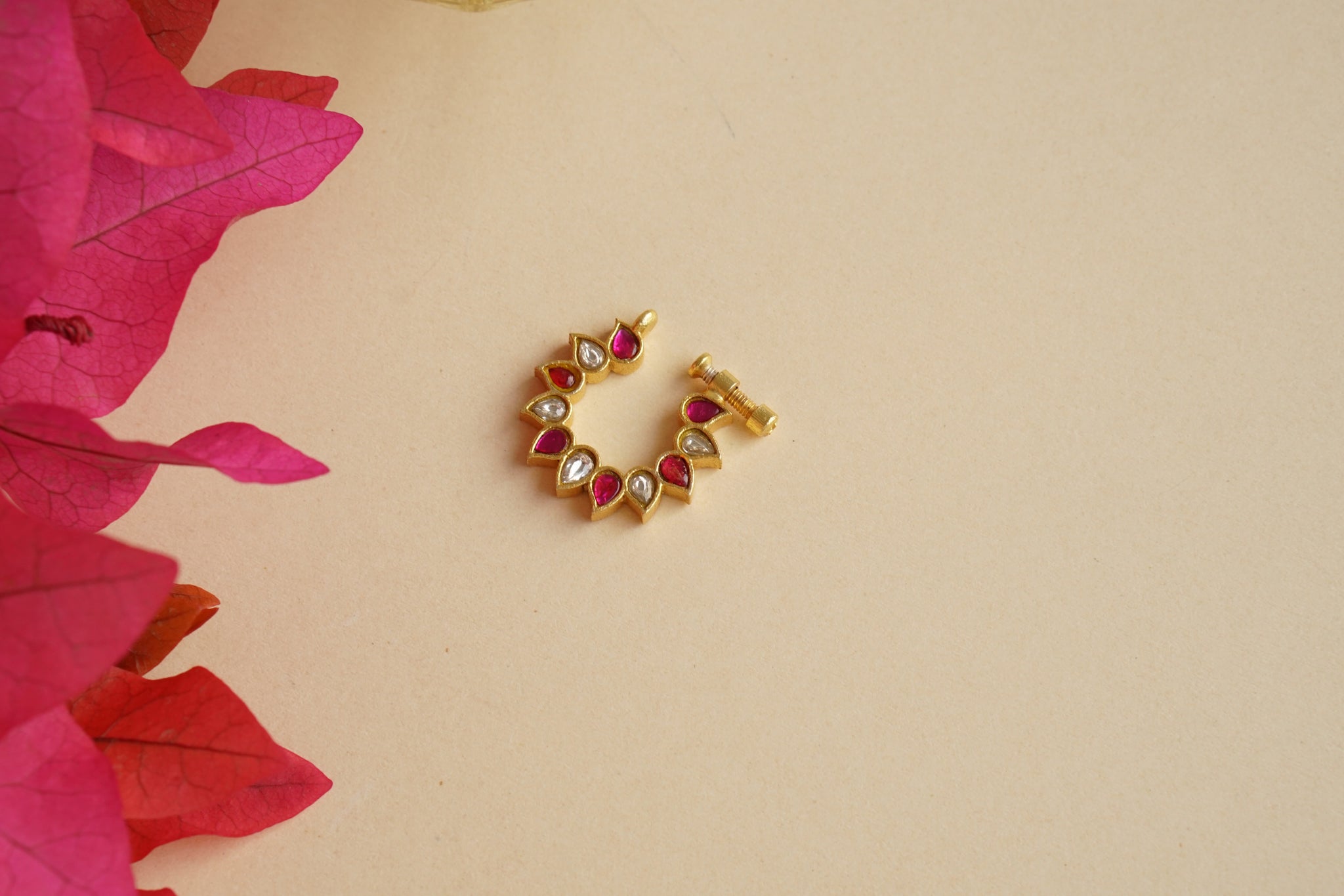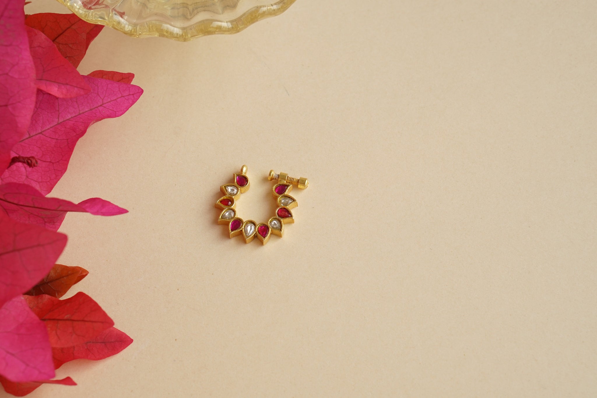 Featuring gold Polished Kundan Nath in silver mixed with brass metal.