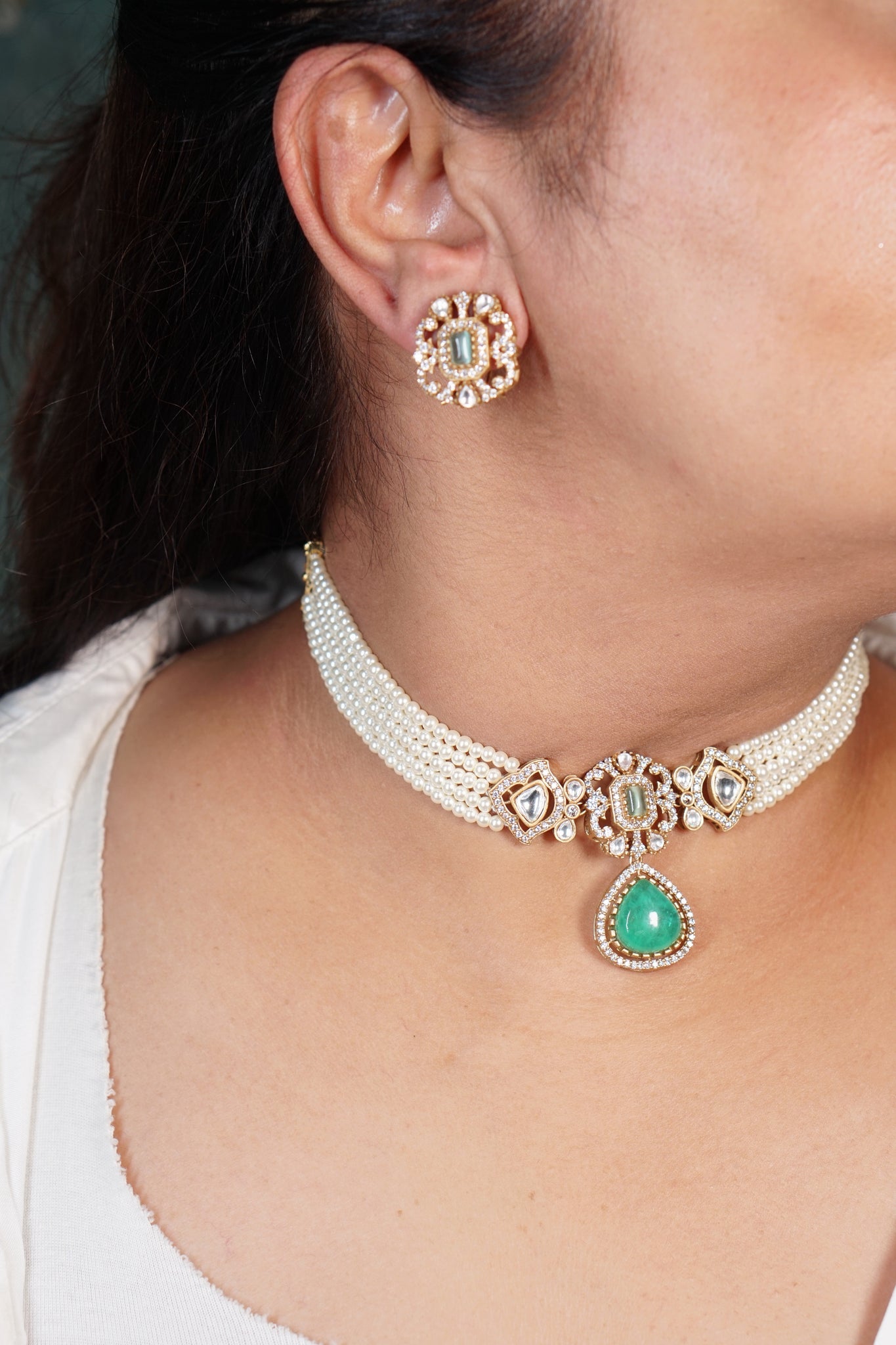 Polki Necklace Set (4-8387)(B)