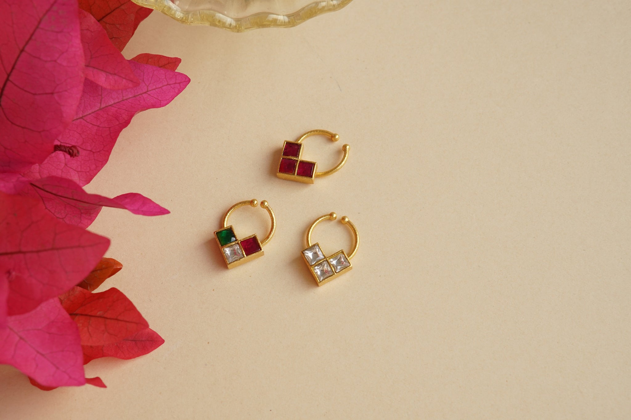 SKU : 2-235-1Featuring gold Polished Kundan septum nosering in silver mixed with brass metal.