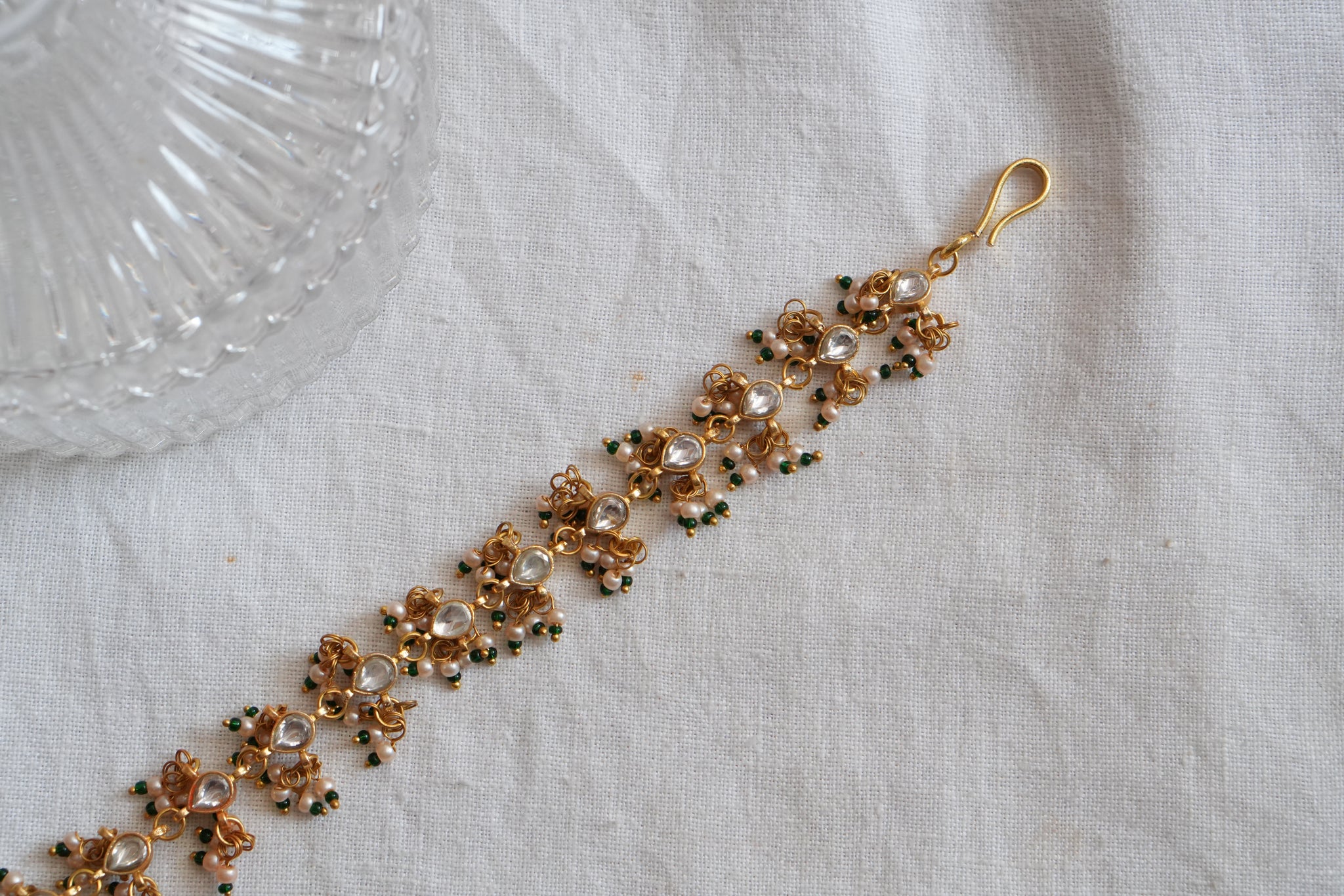 SKU : 5-1644Featuring gold polished real studded Kundan Sispatti in silver mixed with brass metal.