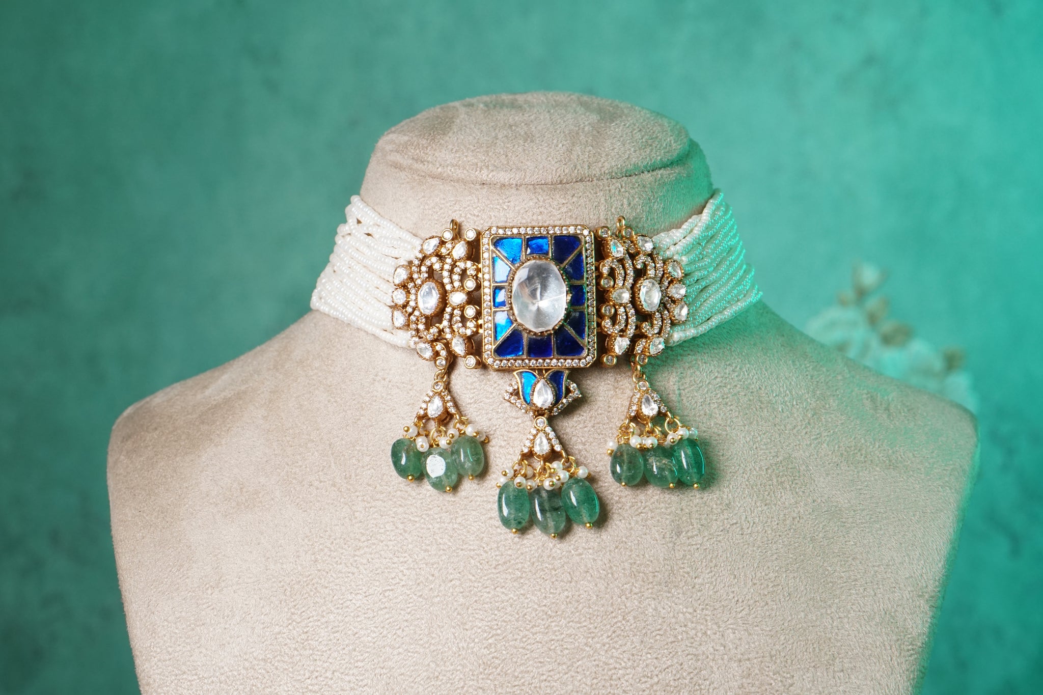The Blue Polki Choker Set (4-8633(B) destined to impress, and priced at only Rs. 4,500.00, for a limited time.