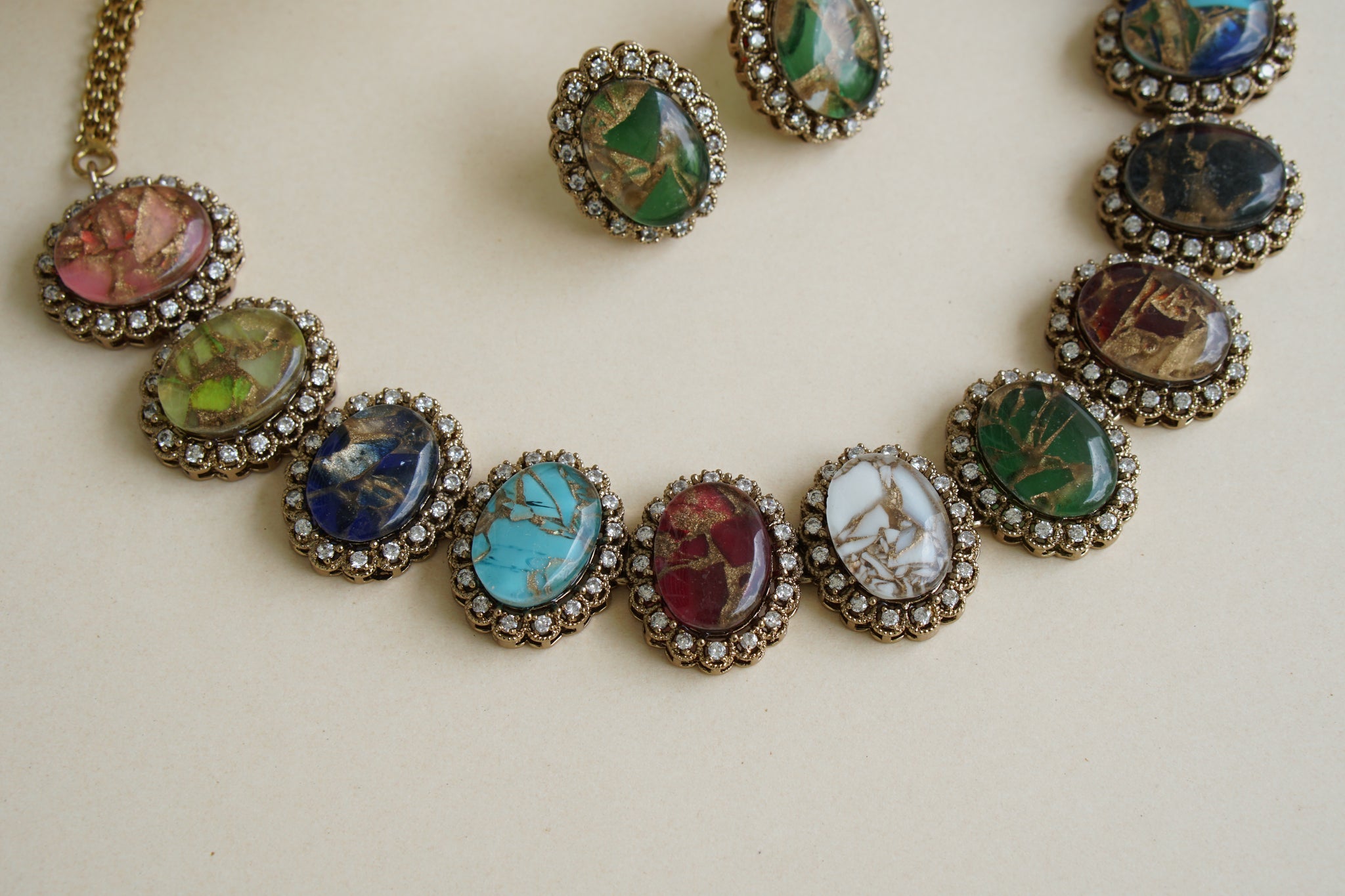 Multi Stone Polki Necklace Set (4-8435)(EX)