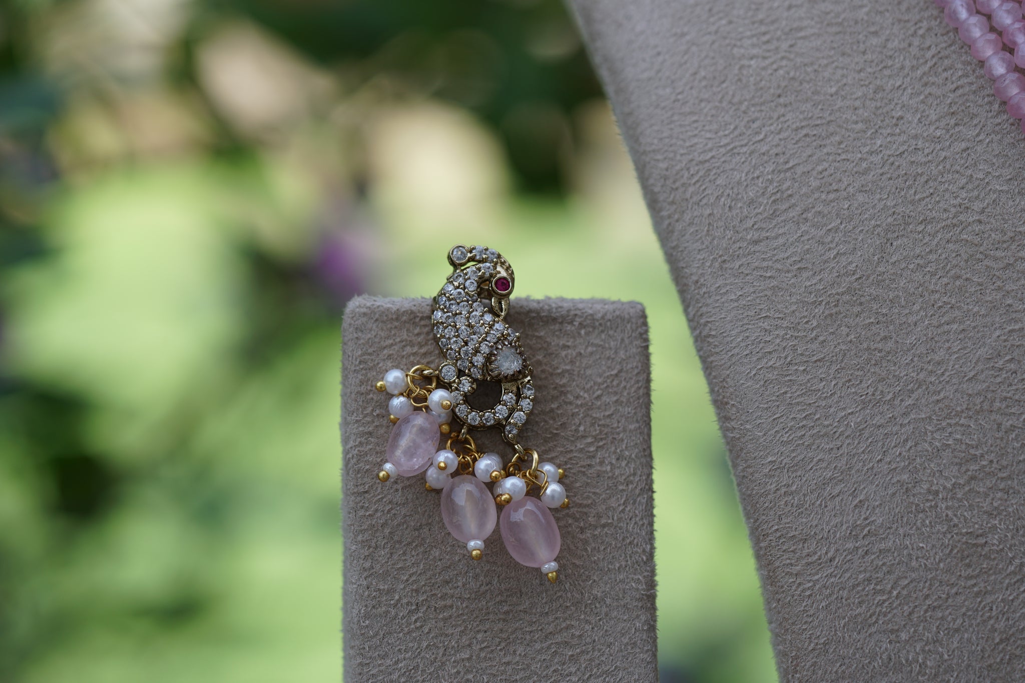 Pink Stone Polki Pendant Necklace Set (4-8479)(B)