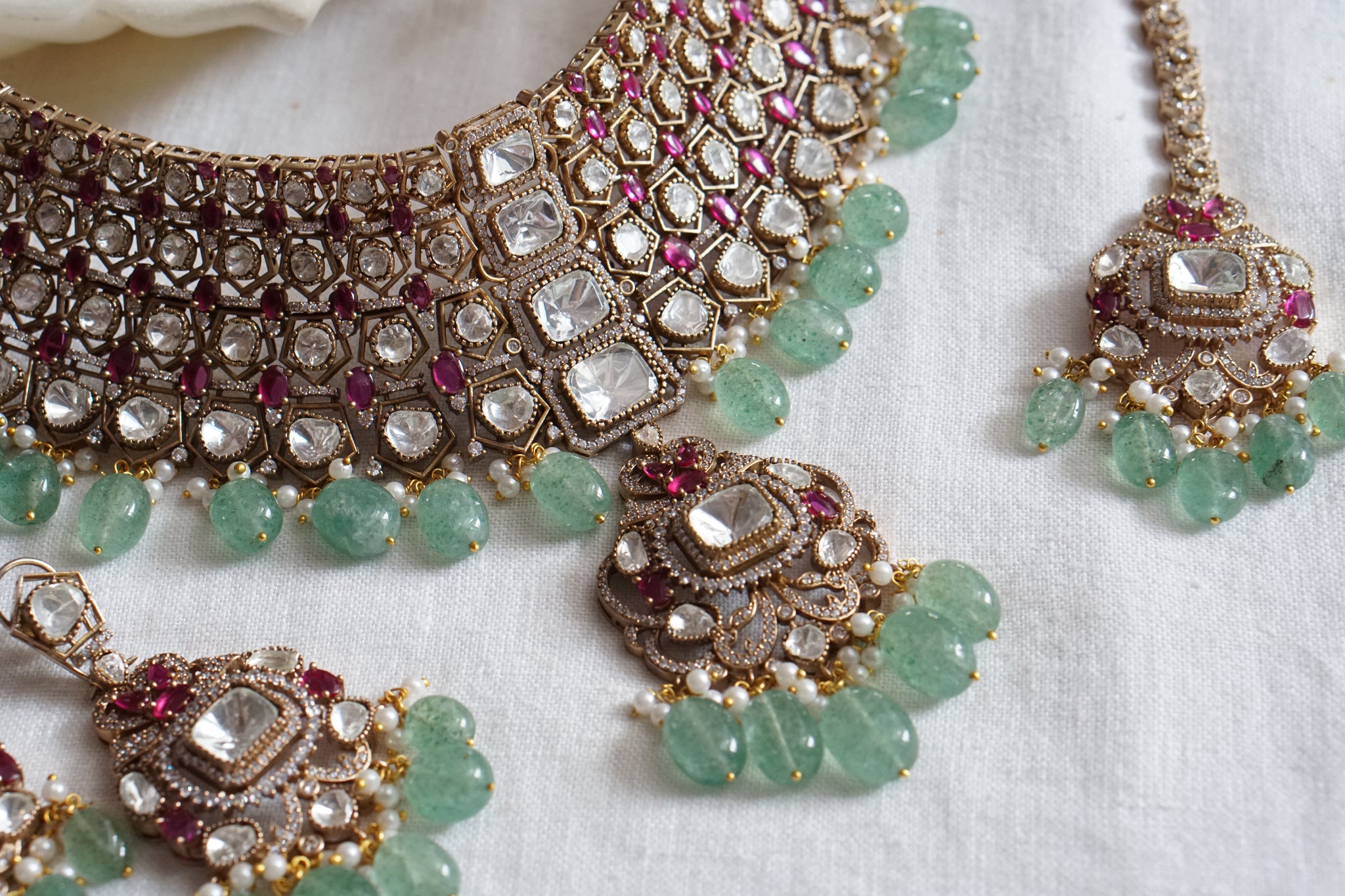 The Pink Polki Necklace Set With Maangtika(4-8433)(B)(CLEARANCE SALE PIECE) is the yin, to your yang. You've found what you're looking for.