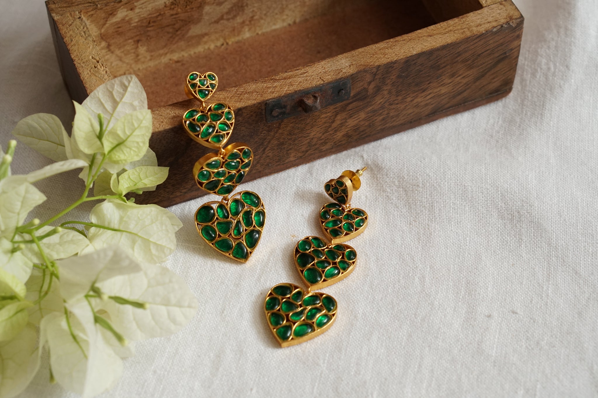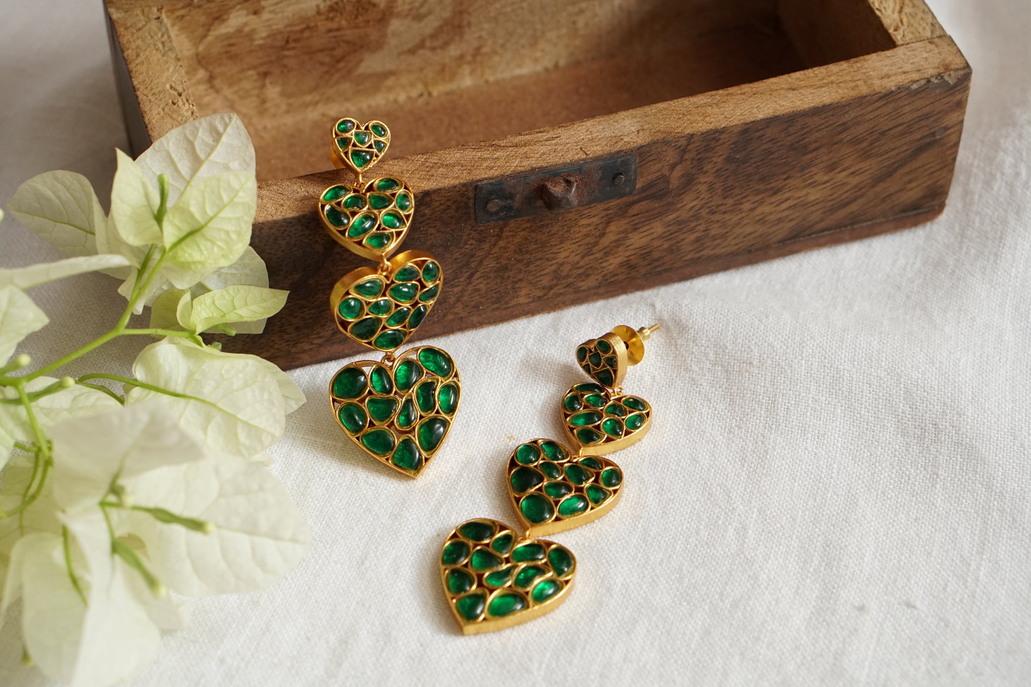 SKU : 1-4757Featuring gold polished real Green Kundan stone earrings made in silver mixed with brass metal.
