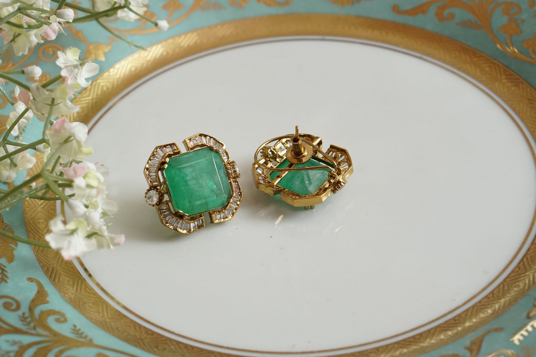 SKU : 1-4893Featuring gold polished Green Stone Studs made in silver mixed with brass metal.