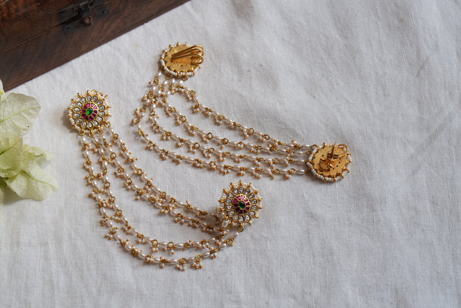 The Kundan Earrings With Ear Chain (1-4965)(K) destined to impress, and priced at only Rs. 5,000.00, for a limited time.