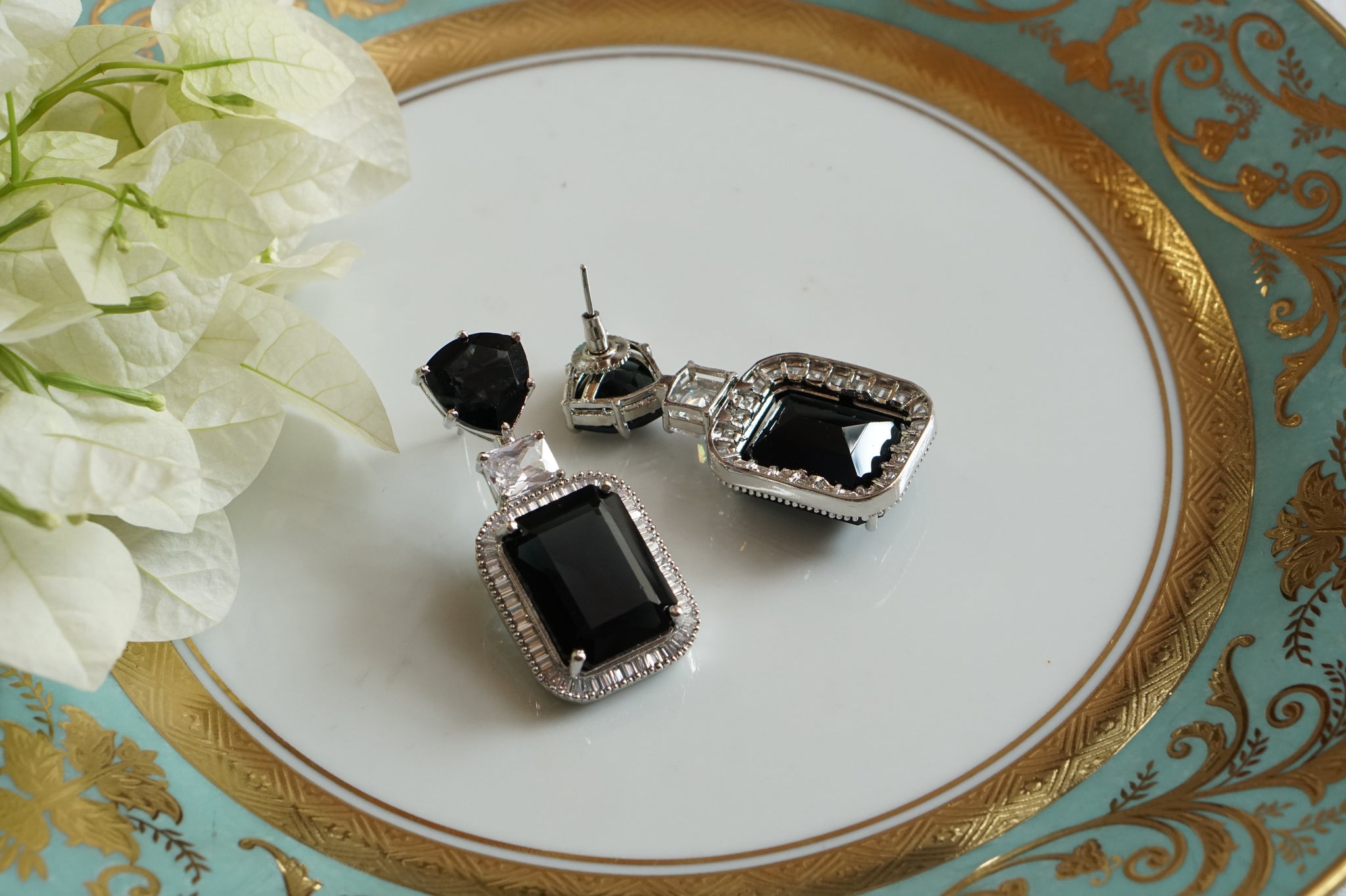 SKU : 1-4743Featuring gold polished real Black stone Earring made in silver mixed with brass metal.
