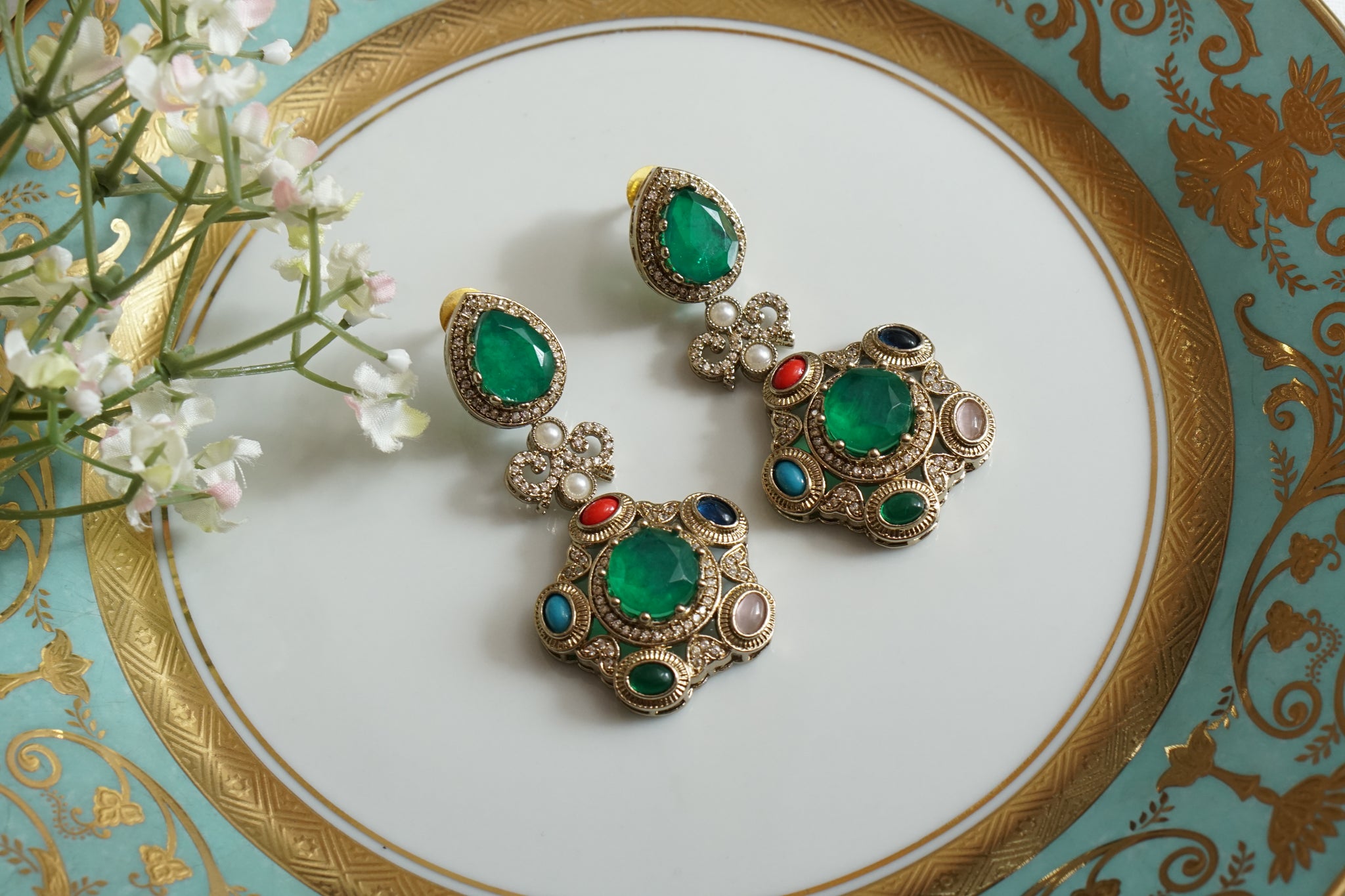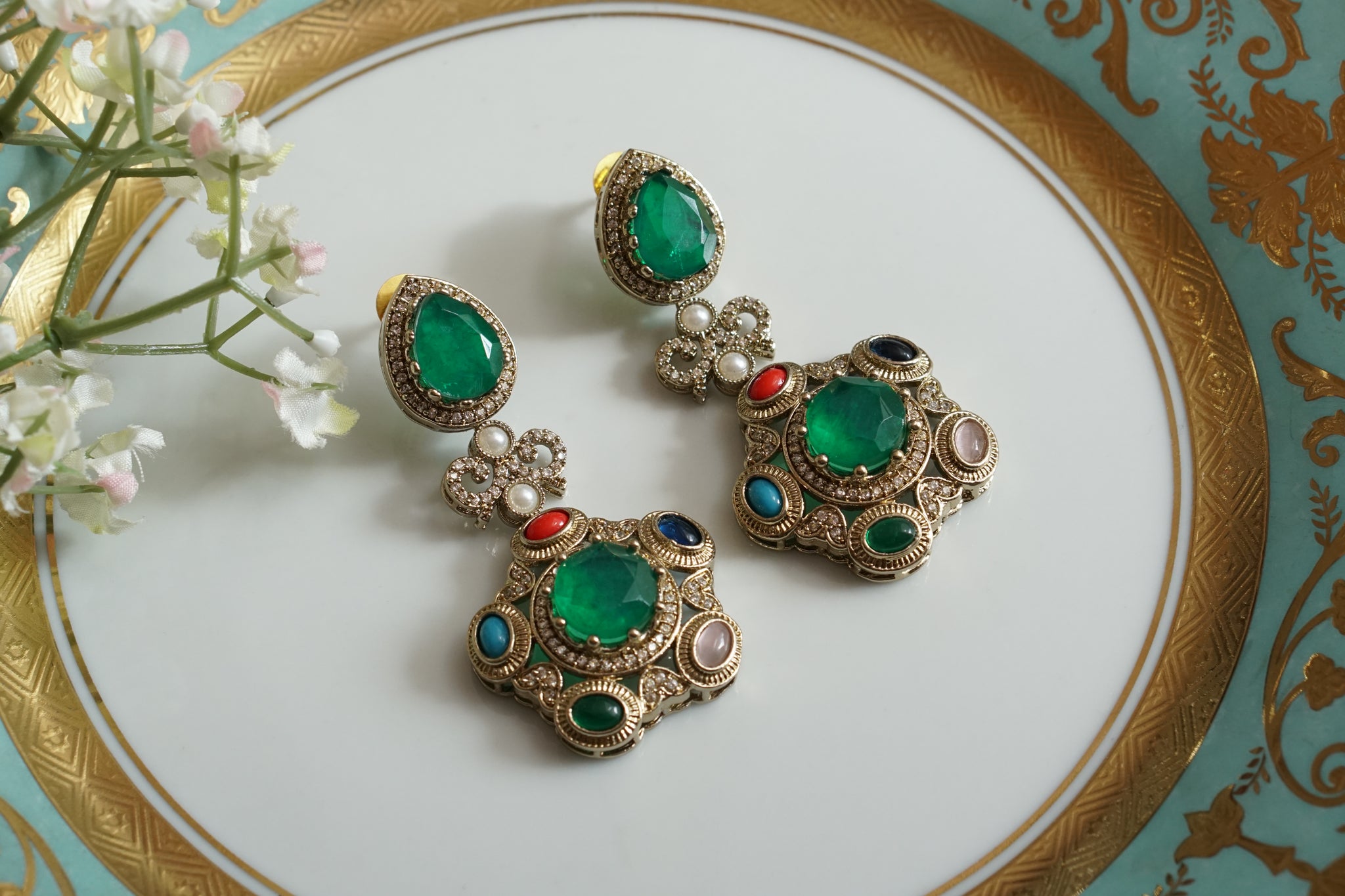 Mint Stone Polki Earrings (1-4852)(B) – JEWELSTYLE