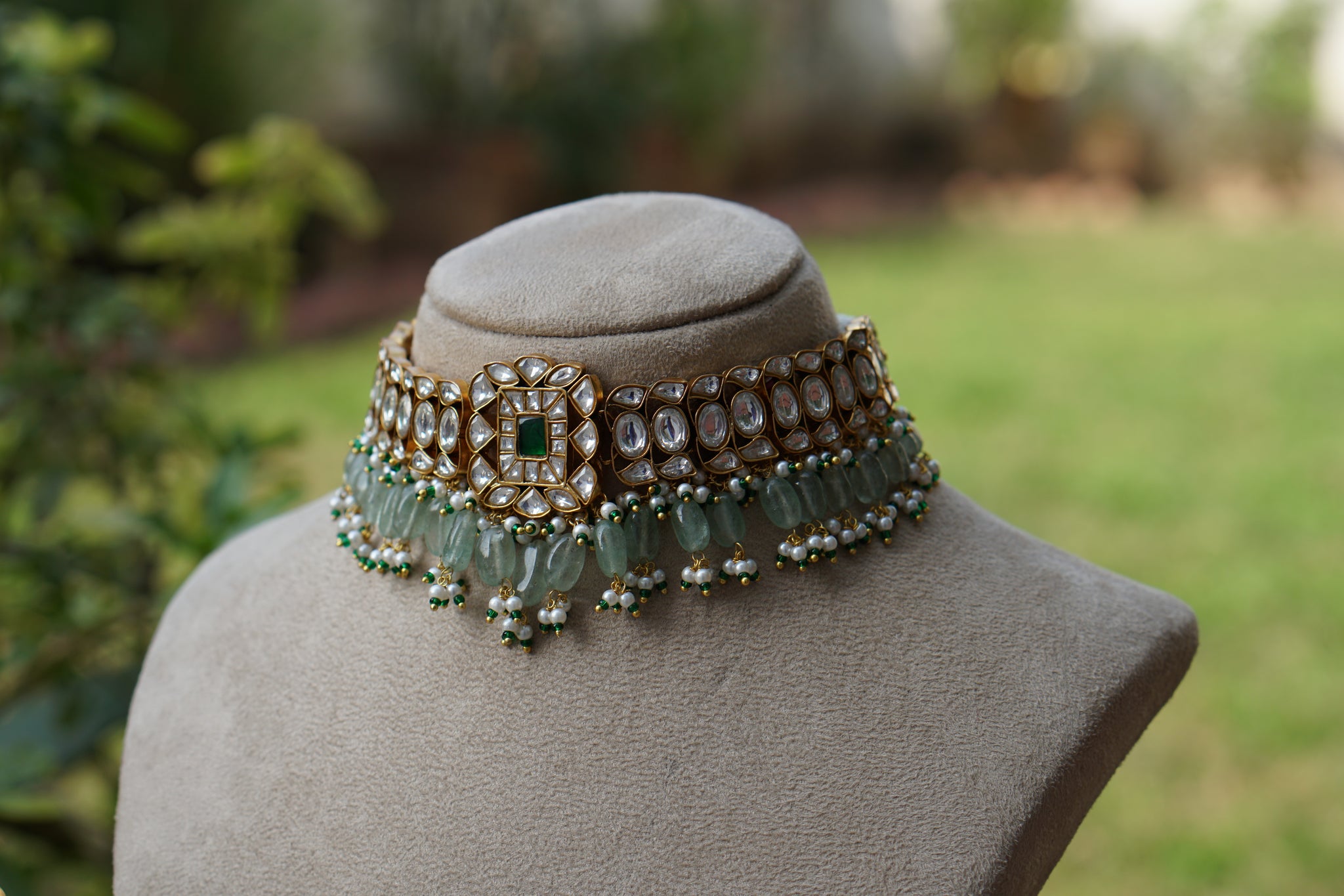 SKU : 4-8797Featuring gold polished Kundan Choker Set in silver mixed with brass metal.