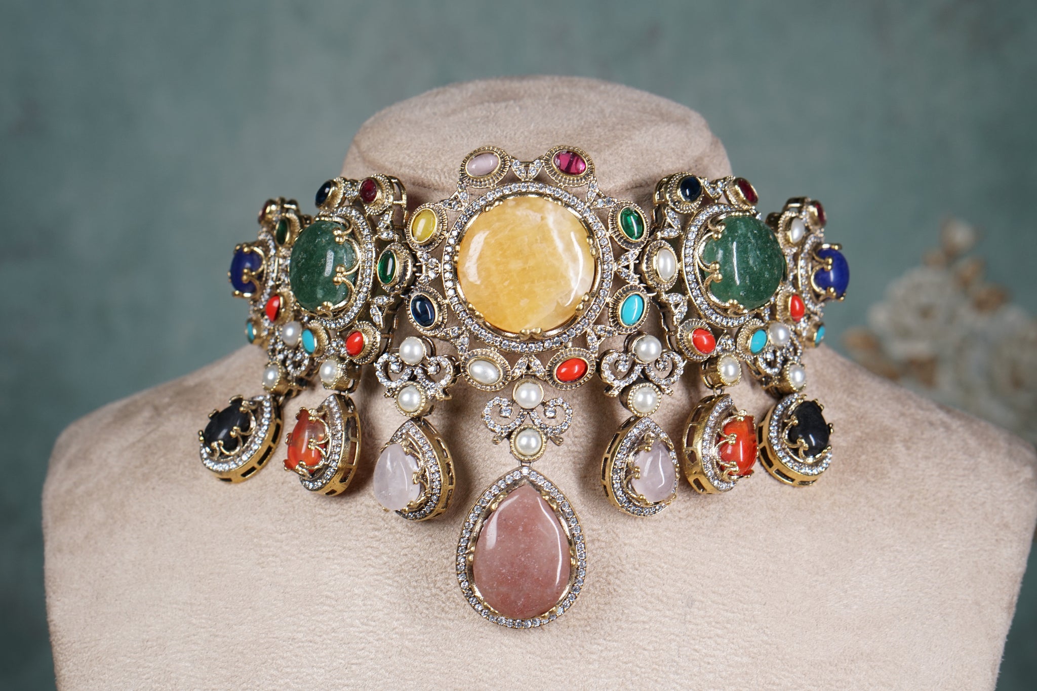On the fence about this Multi Stone Polki choker set (4-8548)(B)? Don't be. Let our satisfaction guarantee address your concerns.