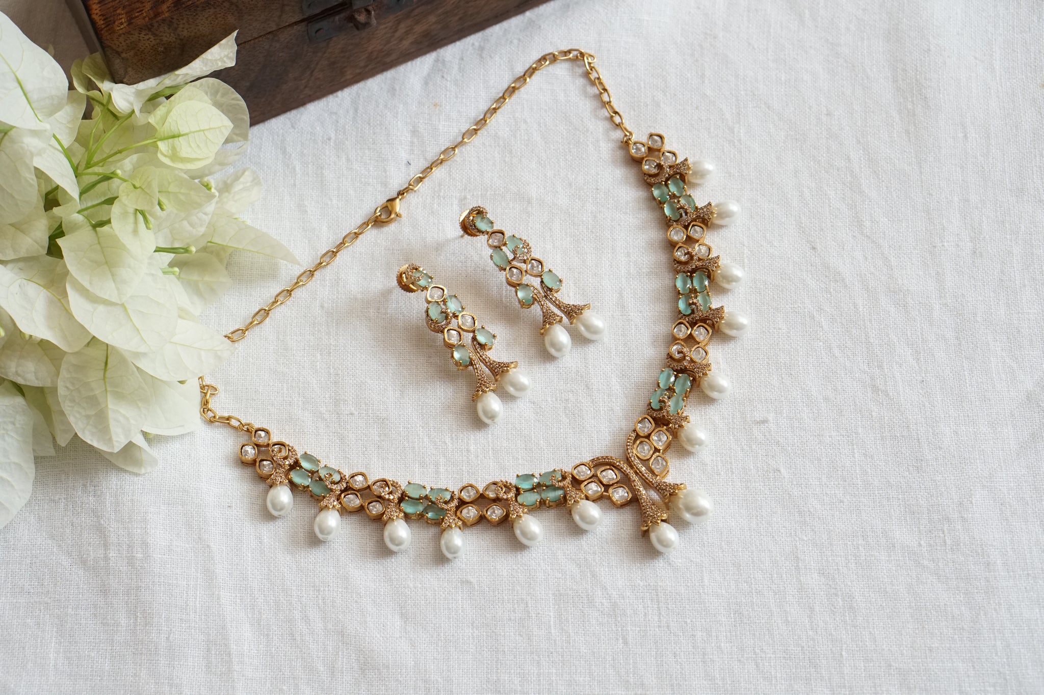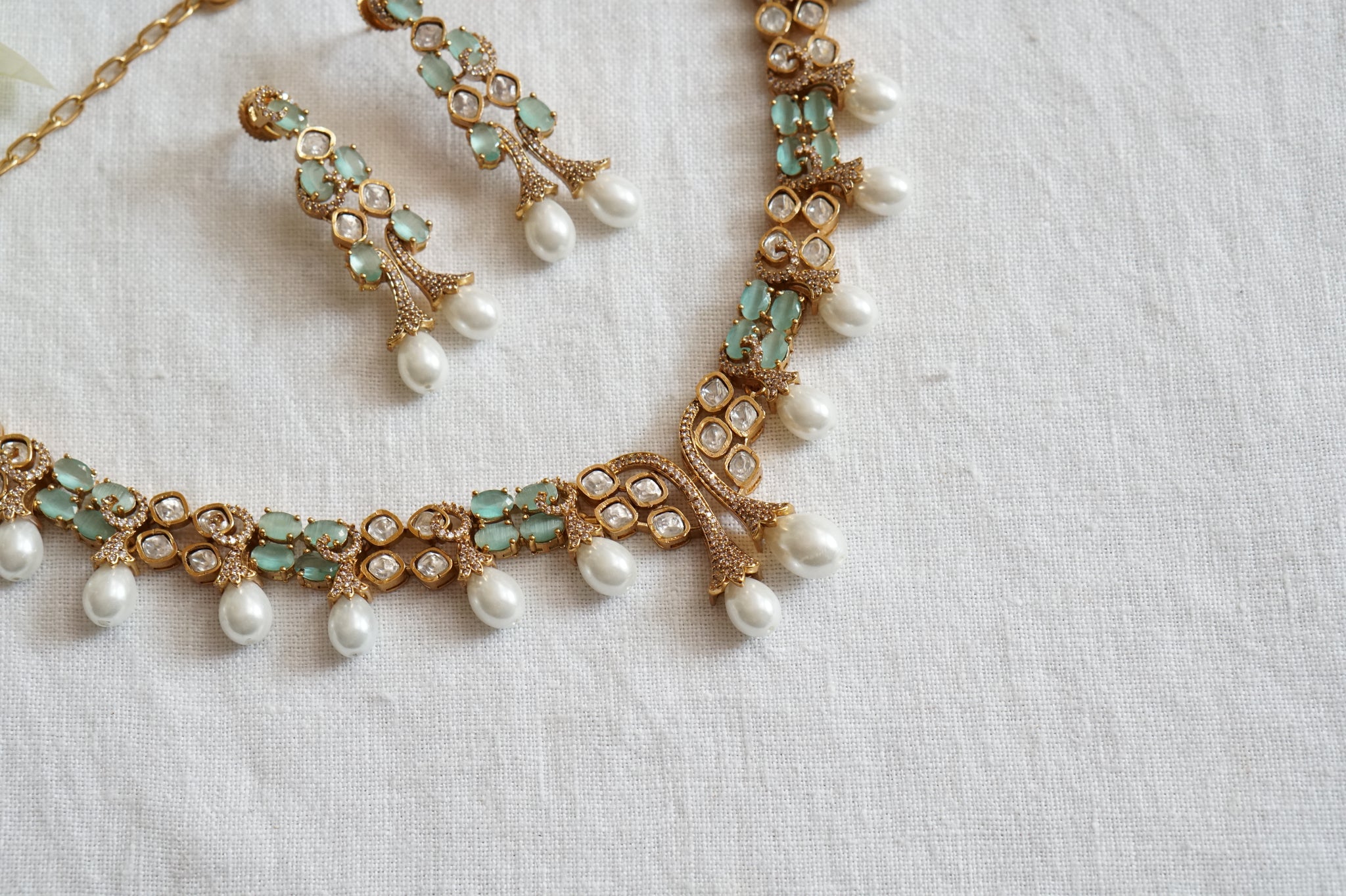 Mint Stone Polki Necklace Set (4-8599)(B)