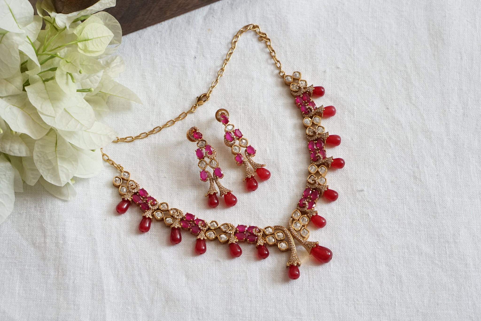 Red Stone Polki Necklace Set (4-8600)(B) – JEWELSTYLE