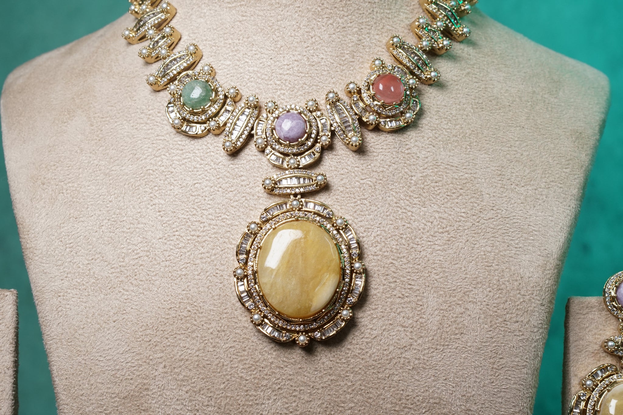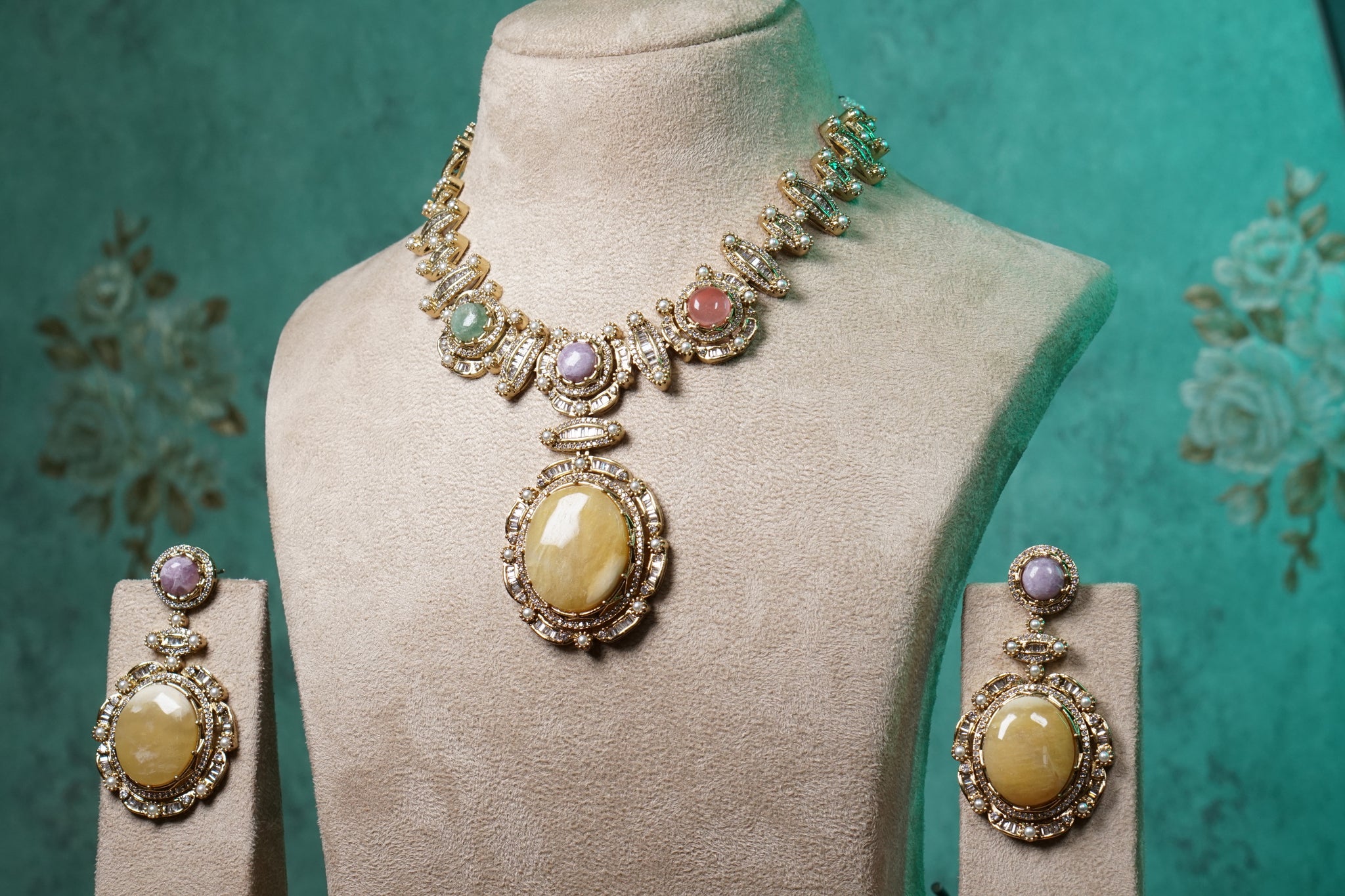 Every product is unique, just like you. If you're looking for a product that fits the mold of your life, the Multi Stone Polki Necklace set (4-8745)(B) is for you.