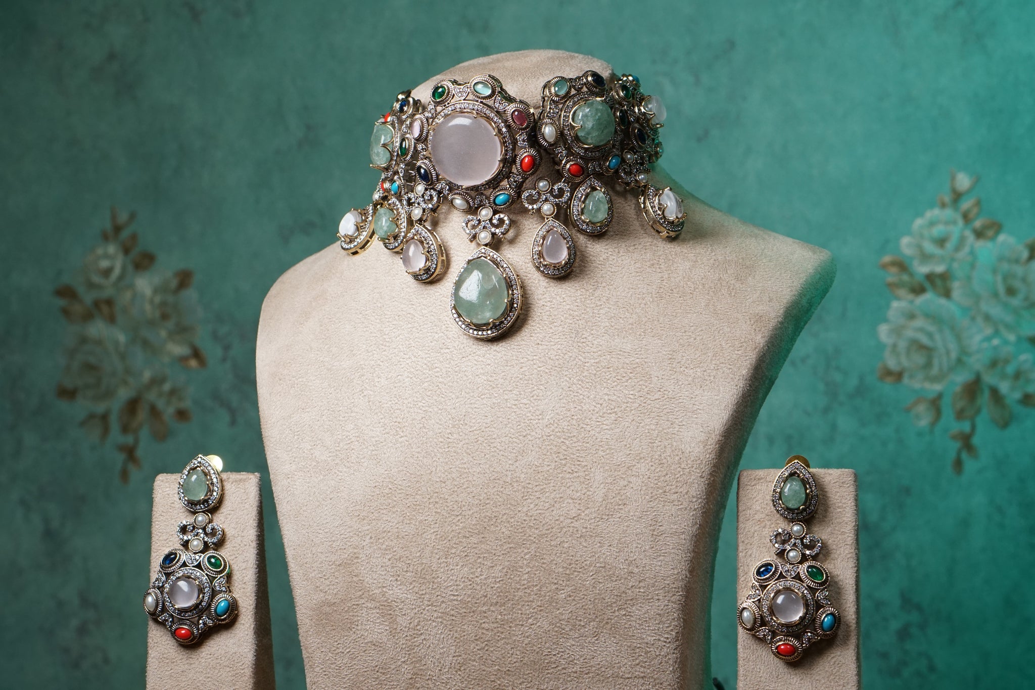 The Multi Stone Polki Choker set (4-8748)(B) destined to impress, and priced at only Rs. 5,000.00, for a limited time.