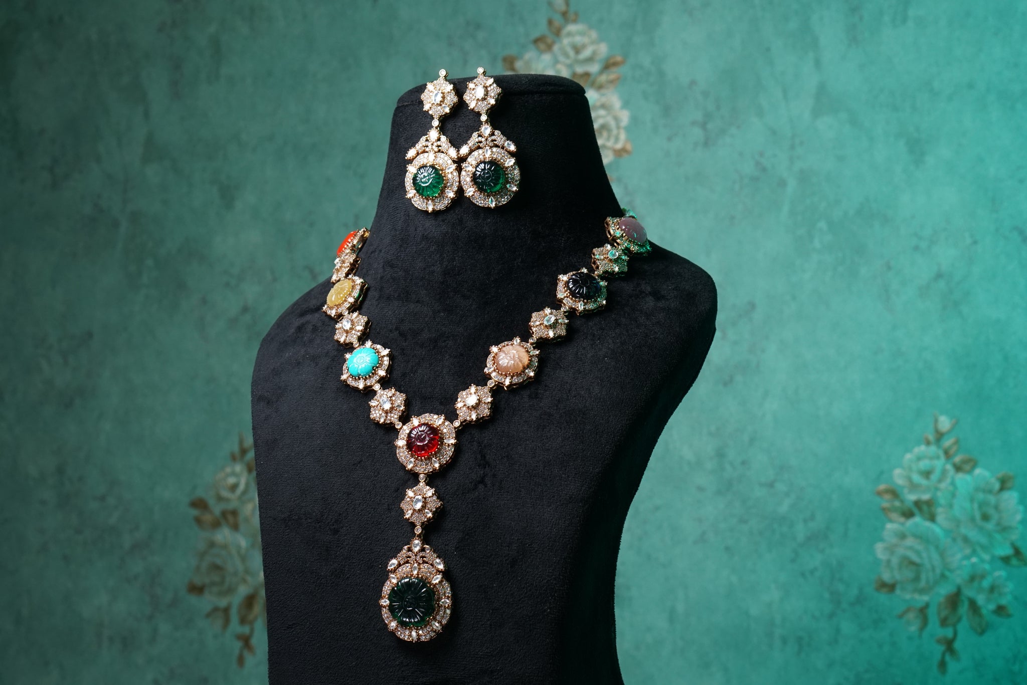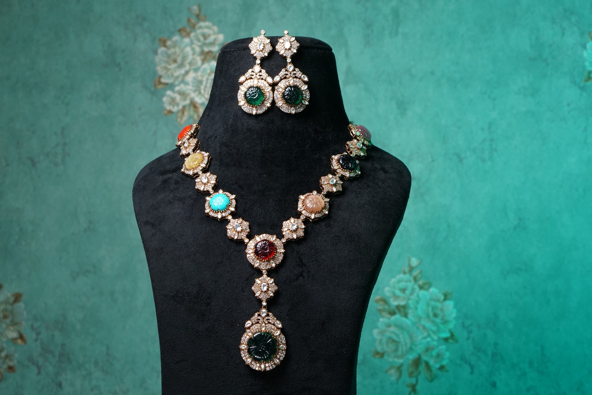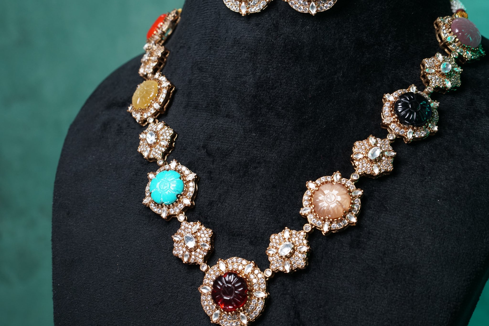 The Navratan Polki Necklace Set (4-8798)(B) is the product you didn't think you need, but once you have it, something you won't want to live without.