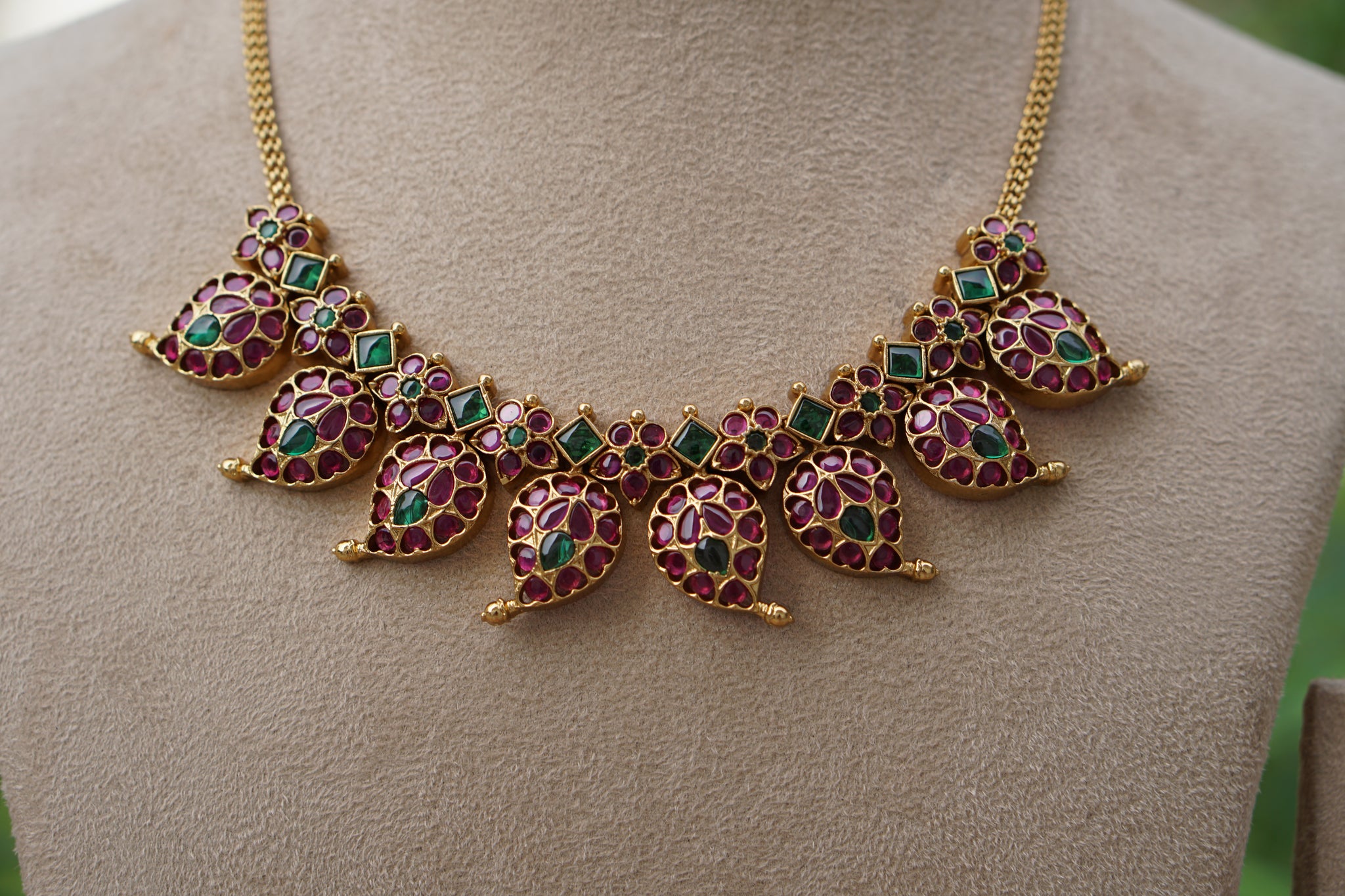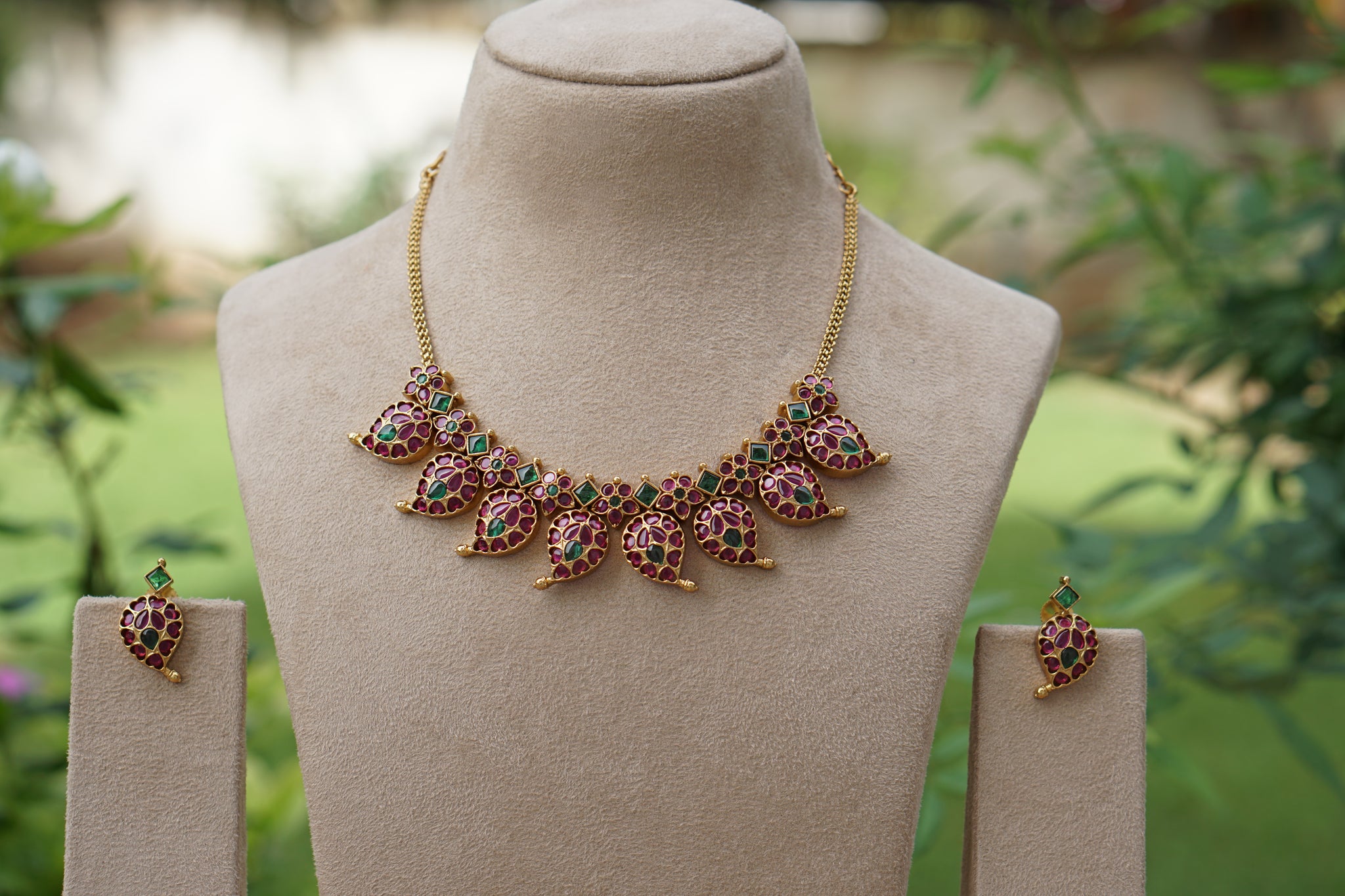 SKU : 4-8501Featuring gold polished antique pink &green necklace set mixed metal.