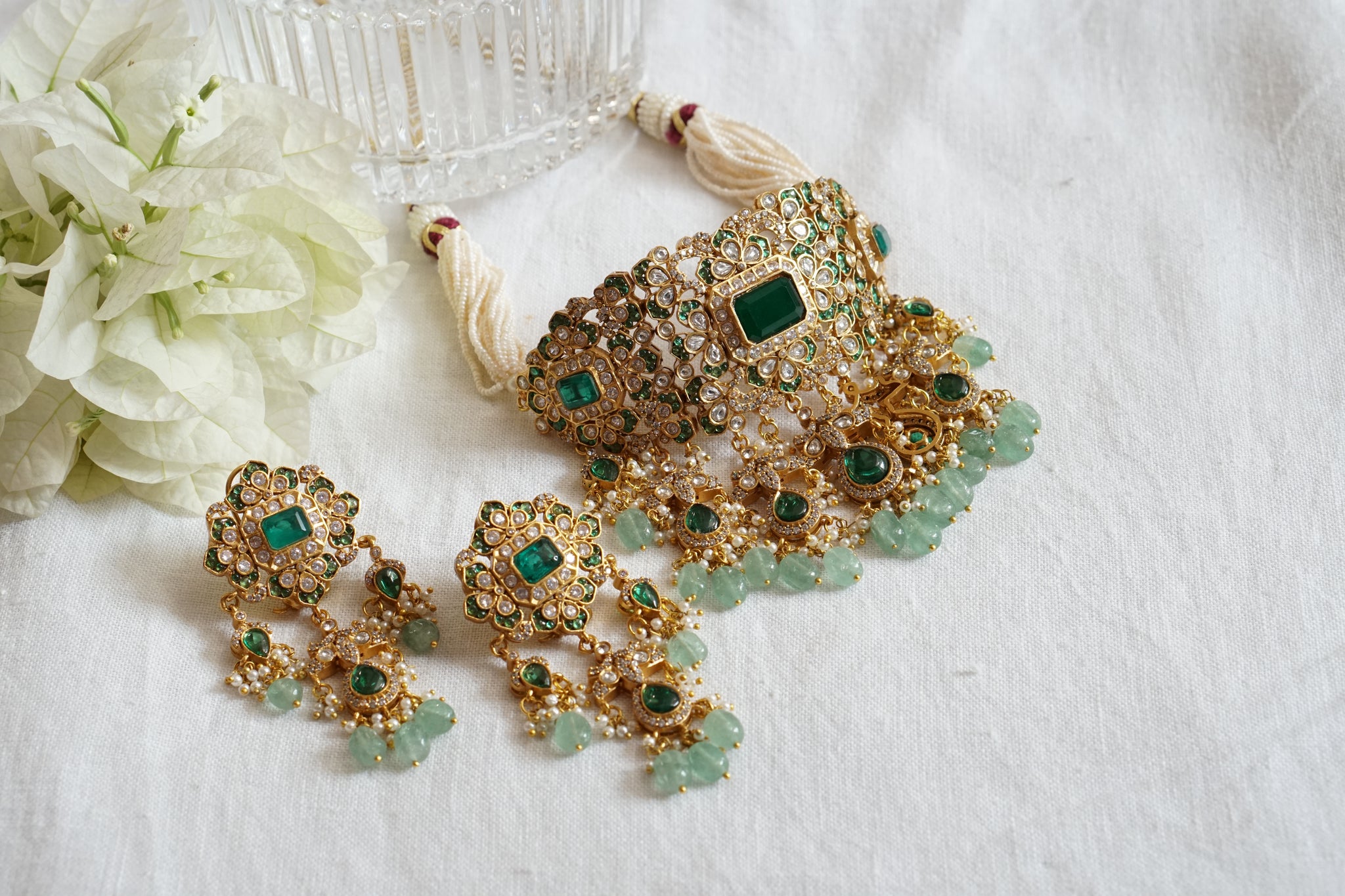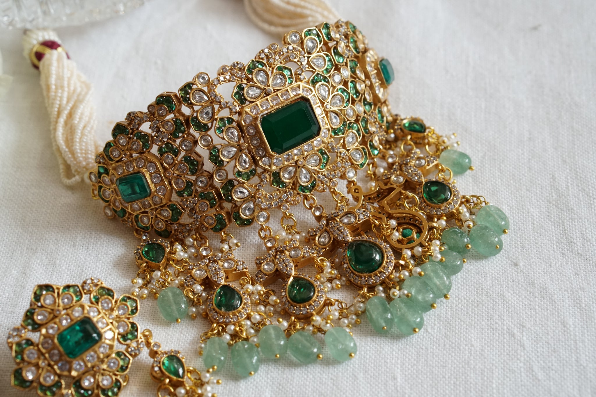 SKU : 4-8609Featuring gold polished real polki Choker set stones studded silver mixed with in brass metal.