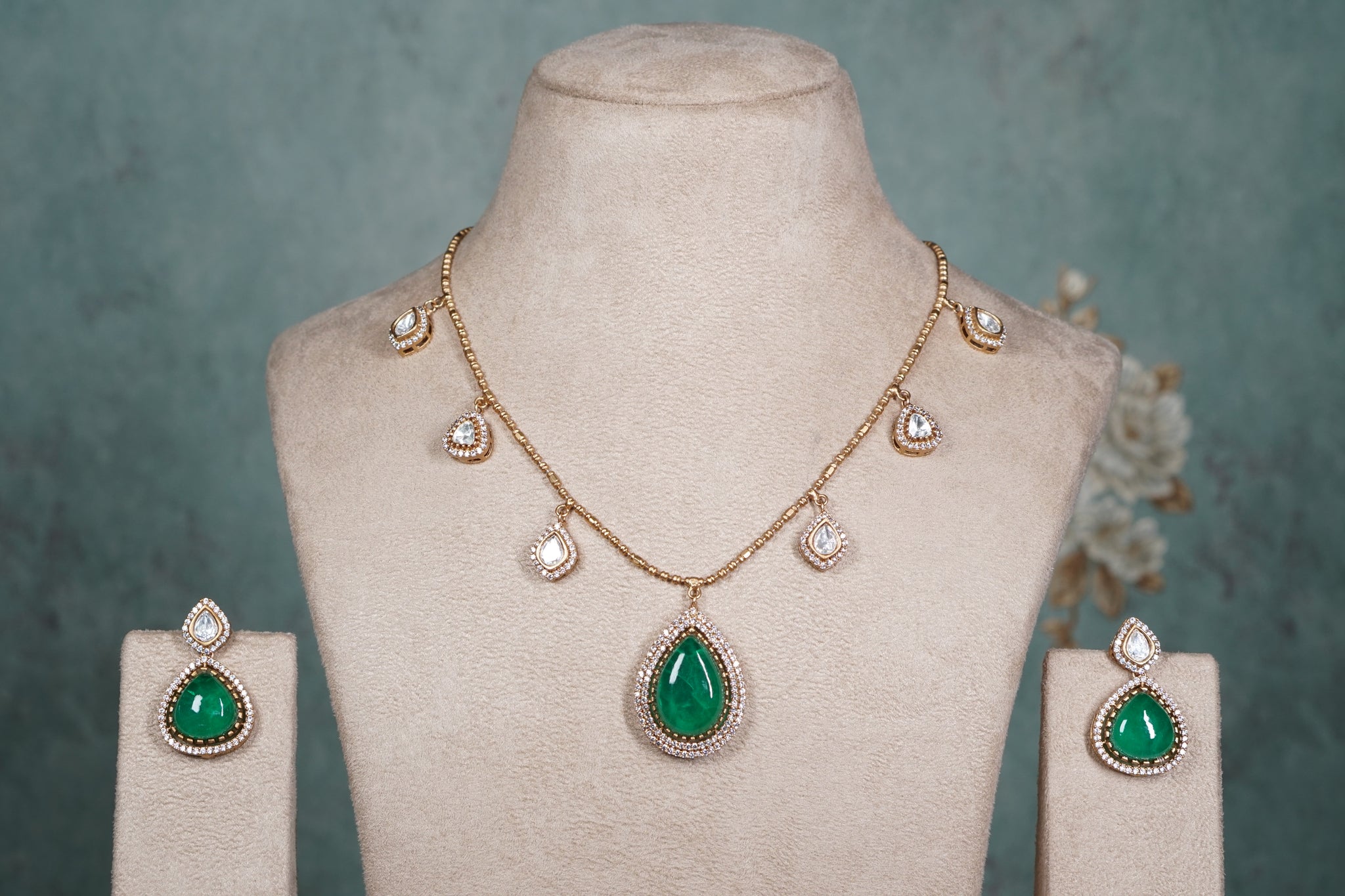 Green Stone Polki Necklace set (4-8559)(B)