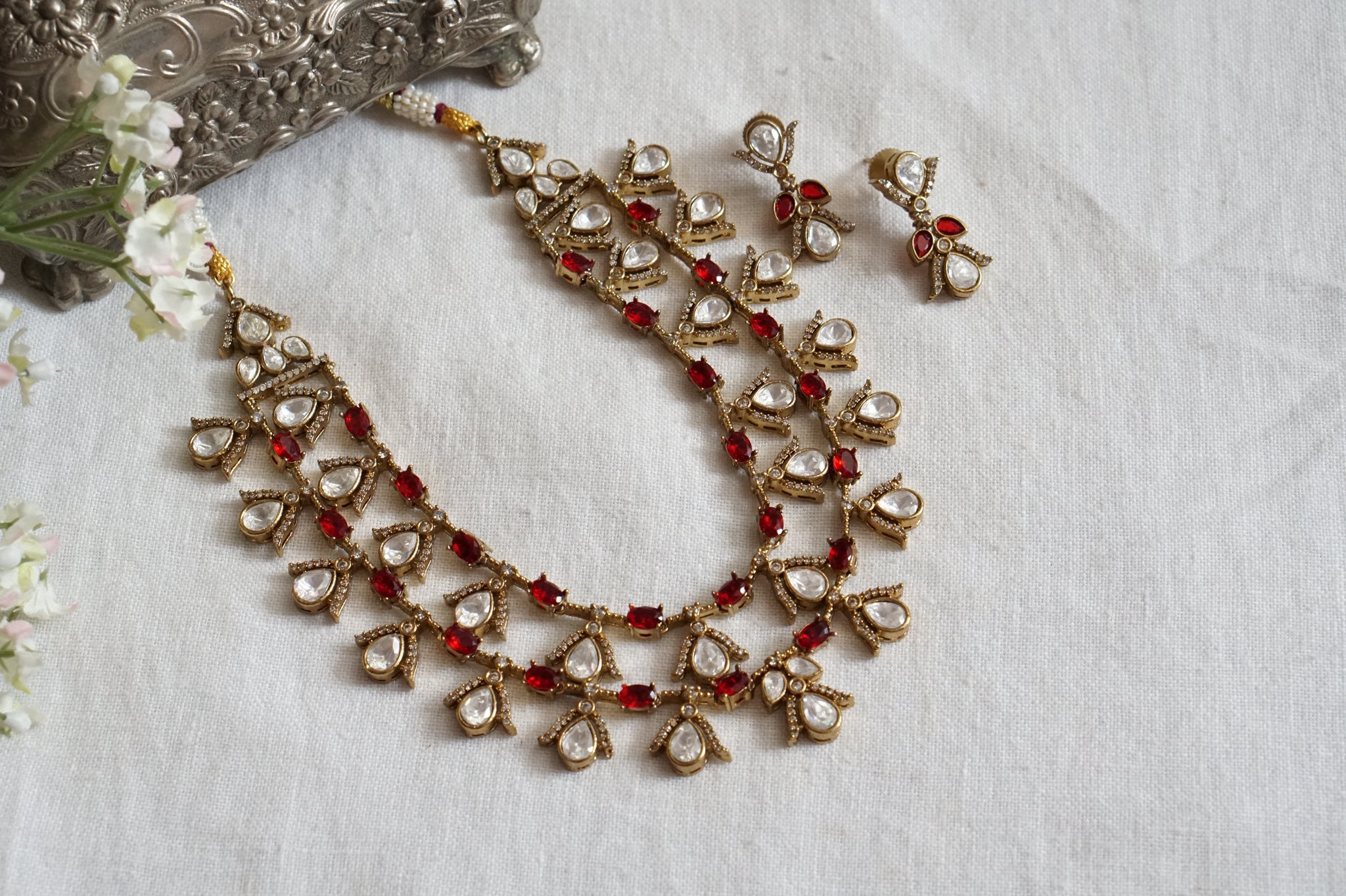 The Polki Necklace Set (4-8691)(B) is evocative, to say the least, but that's why you're drawn to it in the first place.
