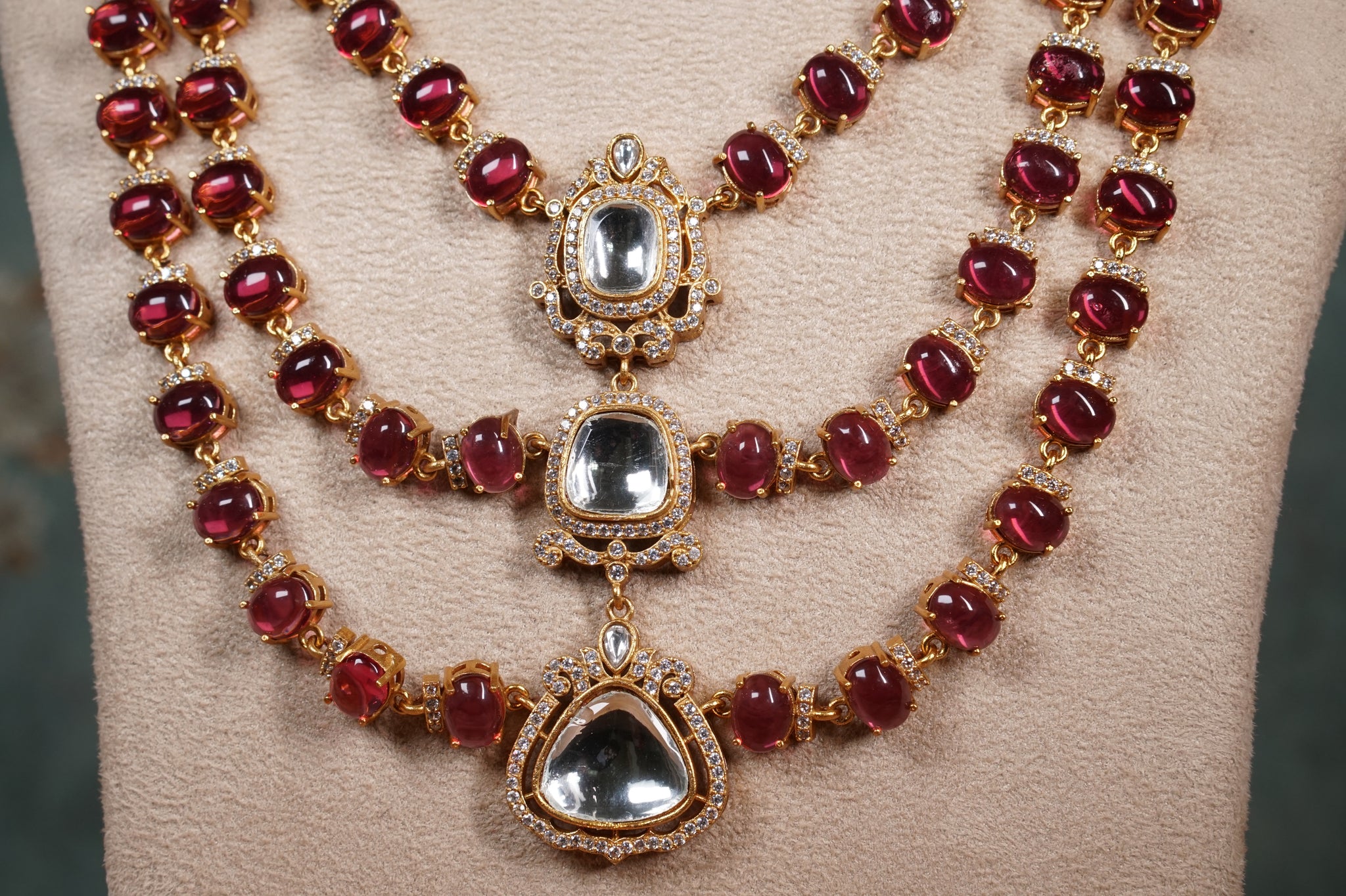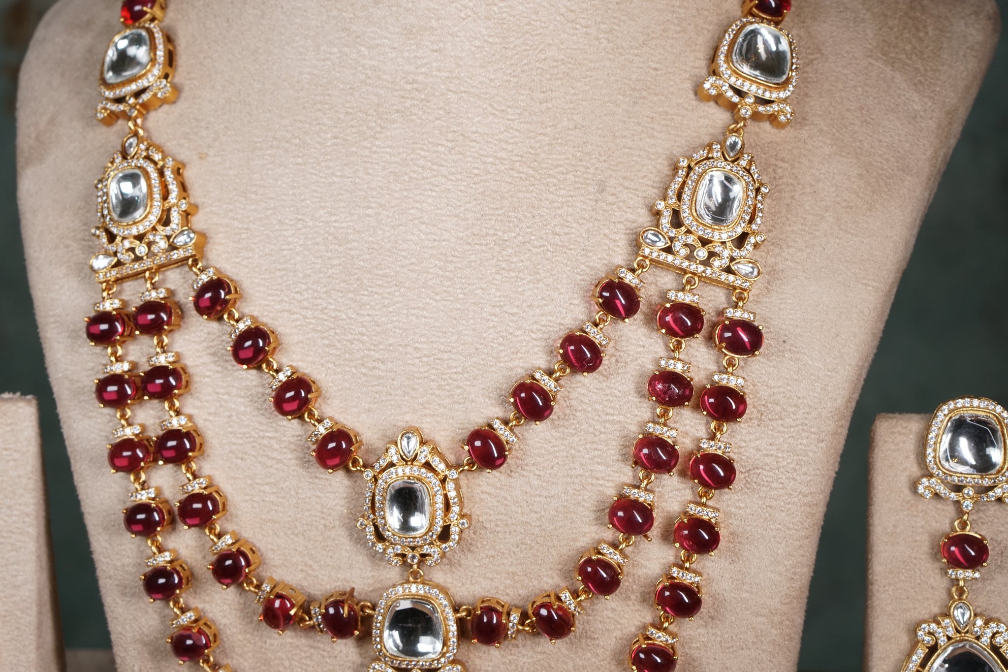 The Red Stone Polki Necklace set (4-8773)(B) is a sensational customer favorite, and we hope you like it just as much.