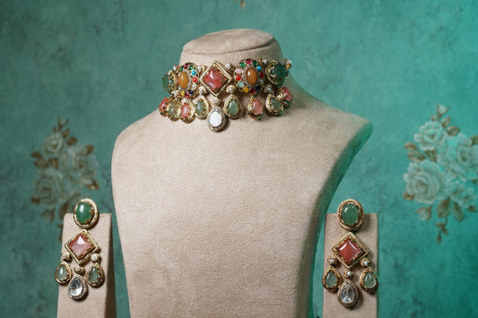 Multi Stone Polki Choker set (4-8749)(B)(already discounted)