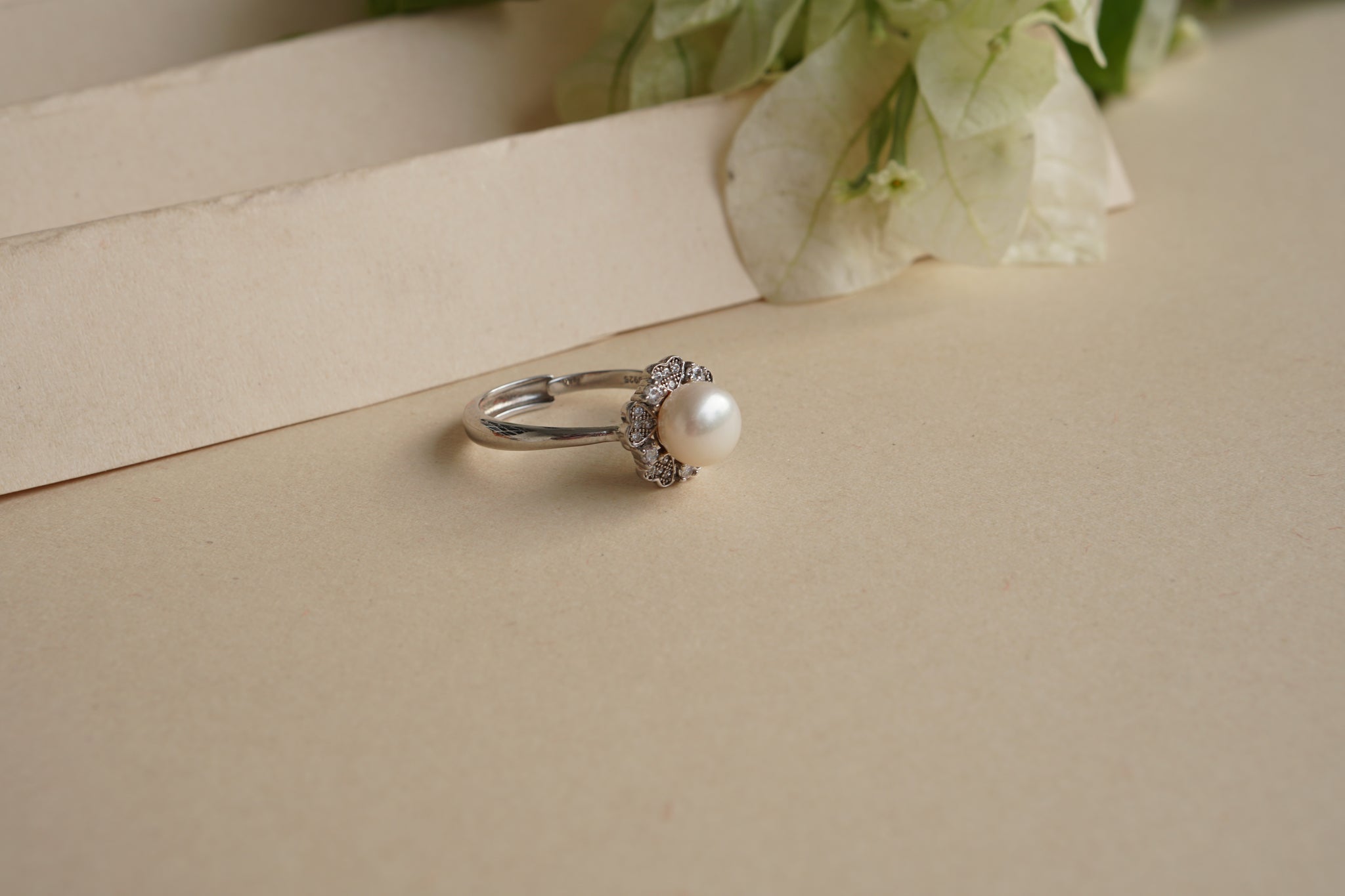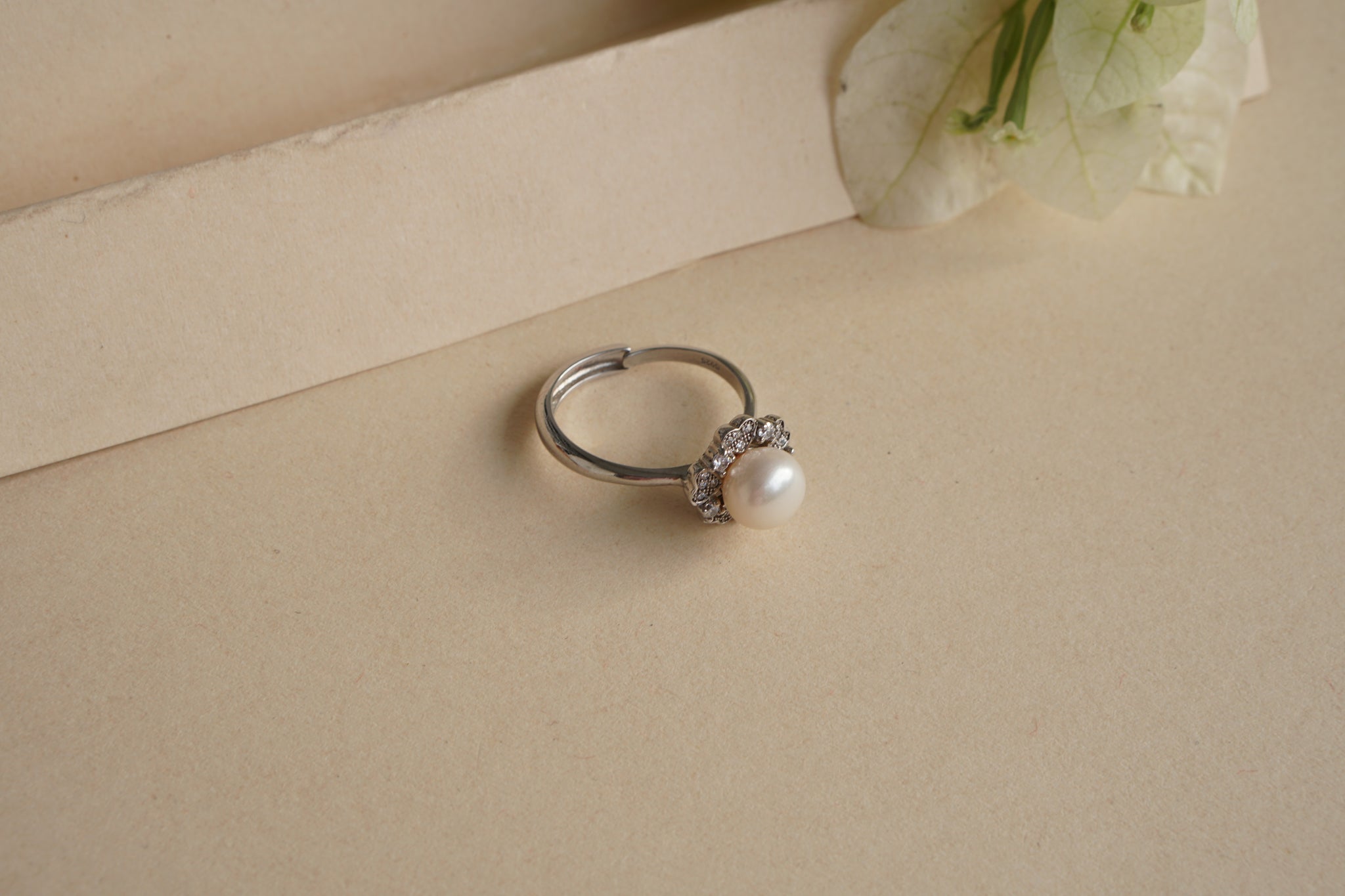 SKU : 7-27Real salt water pearls adjustable ring from vietnam made in 92.5 pure silver.