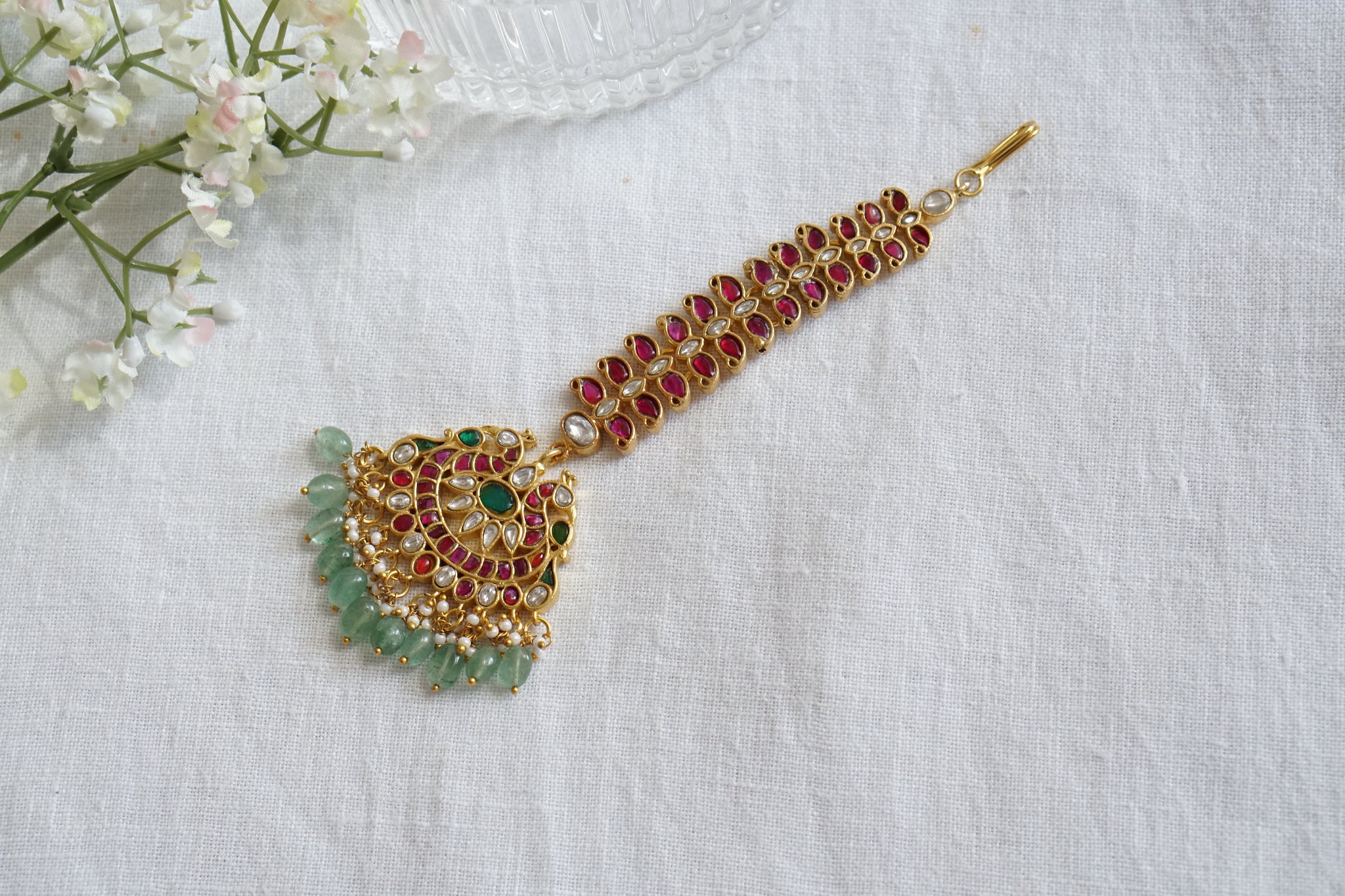 SKU : 5-1540Featuring gold polished real kundan Maangtikka in silver mixed with brass metal.