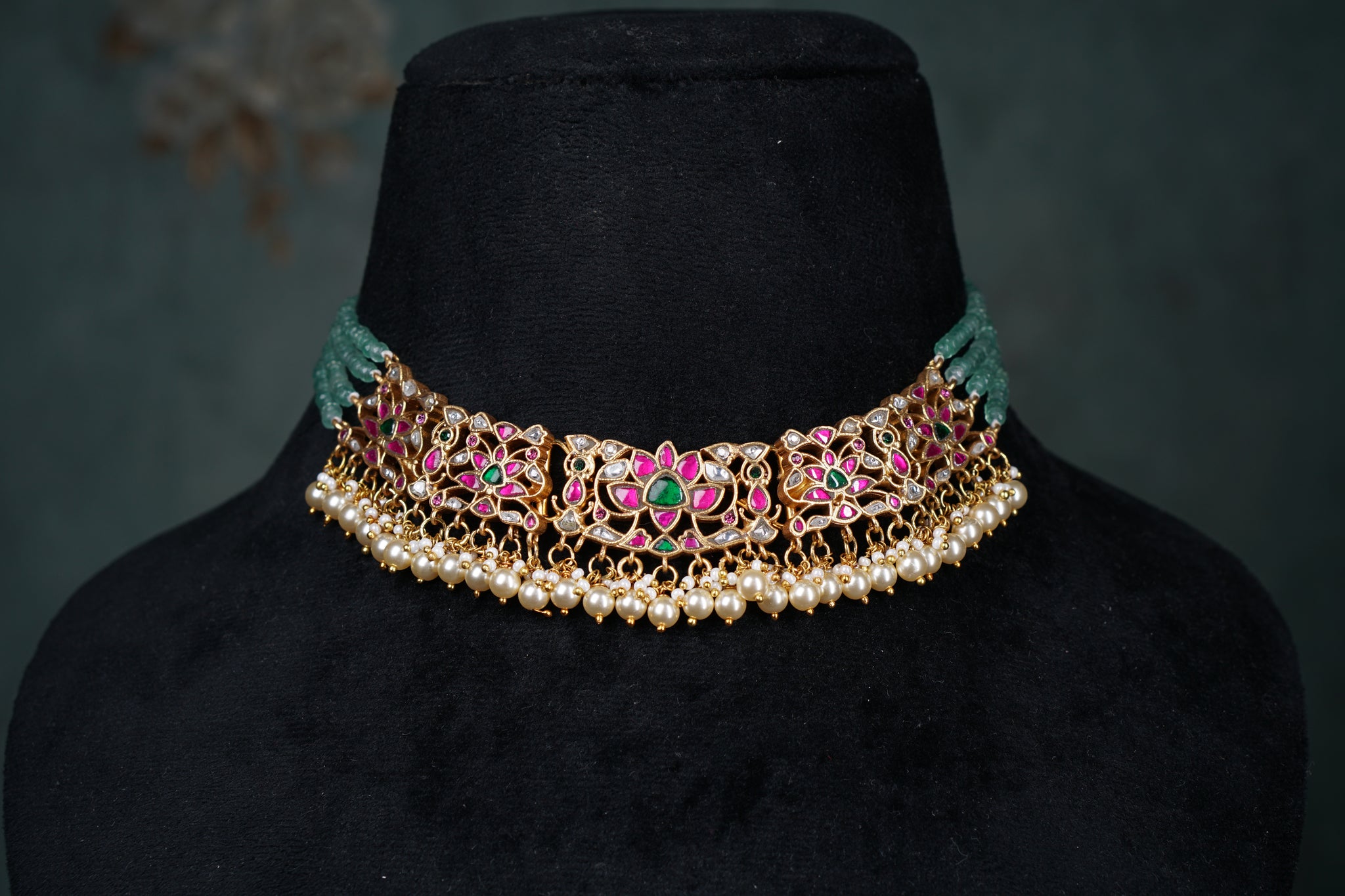 Pink, Green & White kundan choker (4-8537)(K) – JEWELSTYLE