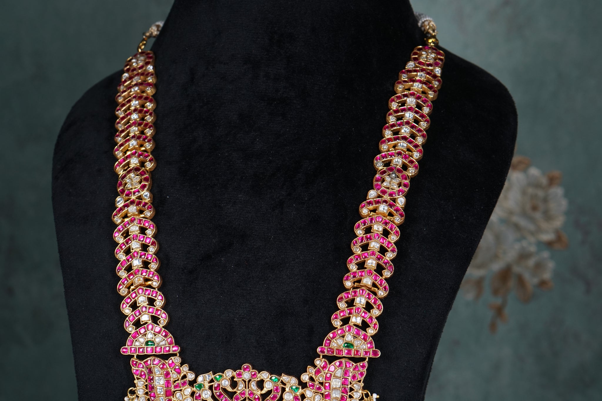 Featuring gold polished real kundan studded necklace in silver mixed with brass metal.